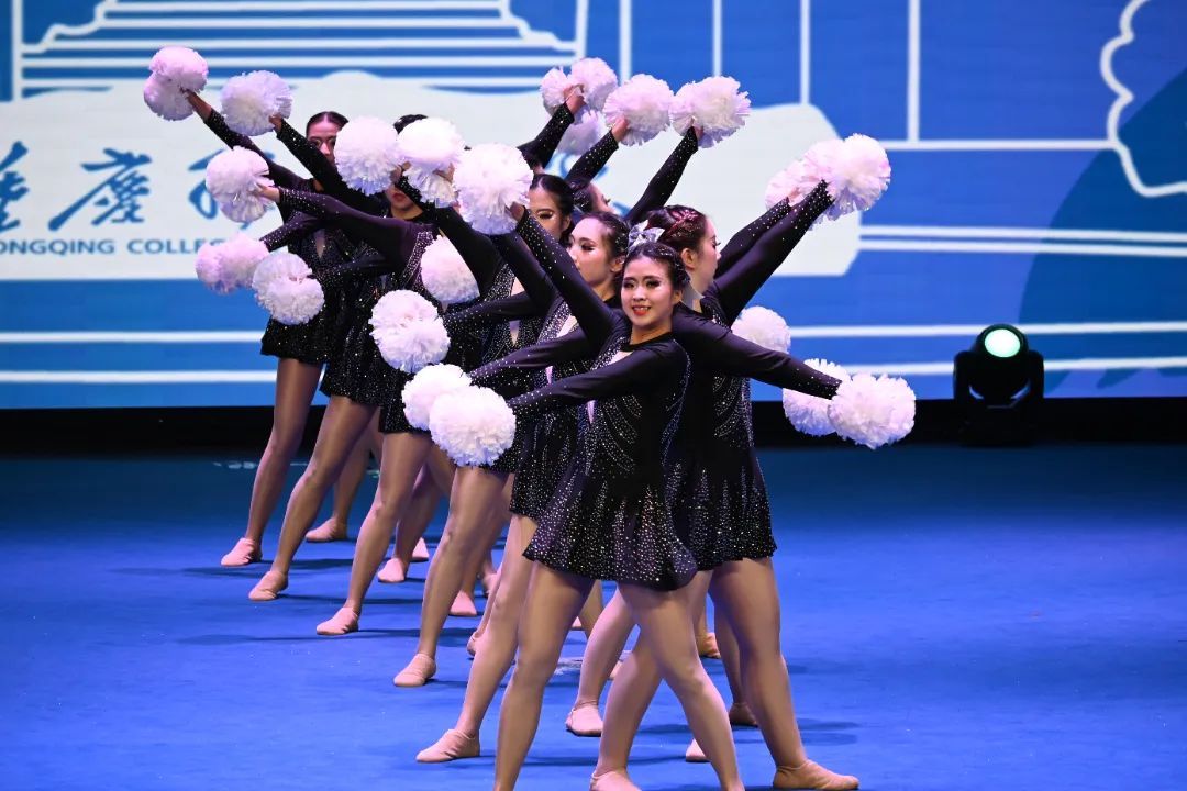 最后出场的是大数据学院啦啦操团队。啦啦操队员们的亮相如一朵含苞待放的花朵。音乐奏响,花球率先舞动,“砰砰砰”,整齐划一的开场动作,手臂伸直、摆动角度分毫不差,每一次花球的抖动,都抖落出满场活力。张琨苹、任心怡、黄怡睿、任心怡……她们的每一个走位、每一个动作、每一次跳跃都做到了极致。这是他们在无数个日夜中的反复讨论、修改、磨合的结果。队伍在舞台上不断变幻队形,从错落有致的三角形,到紧密环绕的同心圆,再到富有层次感的梯队,每一次变化都在诠释团队协作,展示啦啦操的多元魅力,观众沉浸其中,或呐喊助威,或陶醉欣赏,赛场成了激情与美的汇聚之地。