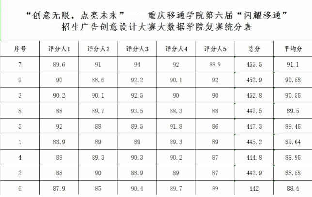 每一个创意都是一颗璀璨的星辰,都值得被看见和赞美。创意是思维碰撞的火花,是敢于挑战的勇气,是不断探索的精神。创意之光在“闪耀移通”中熠熠生辉,孕育着未来的科技创新之路。大数据学院学习部于2024年5月8日17:00-18:30在玉棠书院阶梯教室成功开展了“创意无限,点亮未来”——重庆移通学院第六届“闪耀移通”招生广告创意设计大赛大数据学院复赛,大数据学院学工办主任李进老师及6位辅导员老师共同出席担任评委。