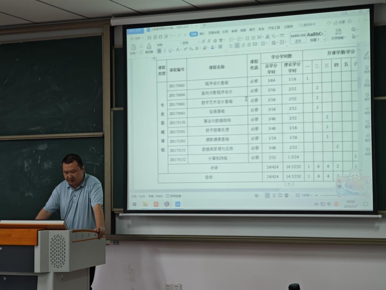 为加强教师队伍建设,更好促进教师明确数字媒体技术专业的人才培养方案,梳理专业发展脉络,提升教师的课堂质量,明确授课方向,5月7日下午,数字媒体技术教研室全体教师在勤者楼410教室开展了"数字媒体技术专业培养方案解读"的研讨交流会。本次交流会由数字媒体技术教研室主任蔡宇老师主持,专业负责人耿强老师主讲。
