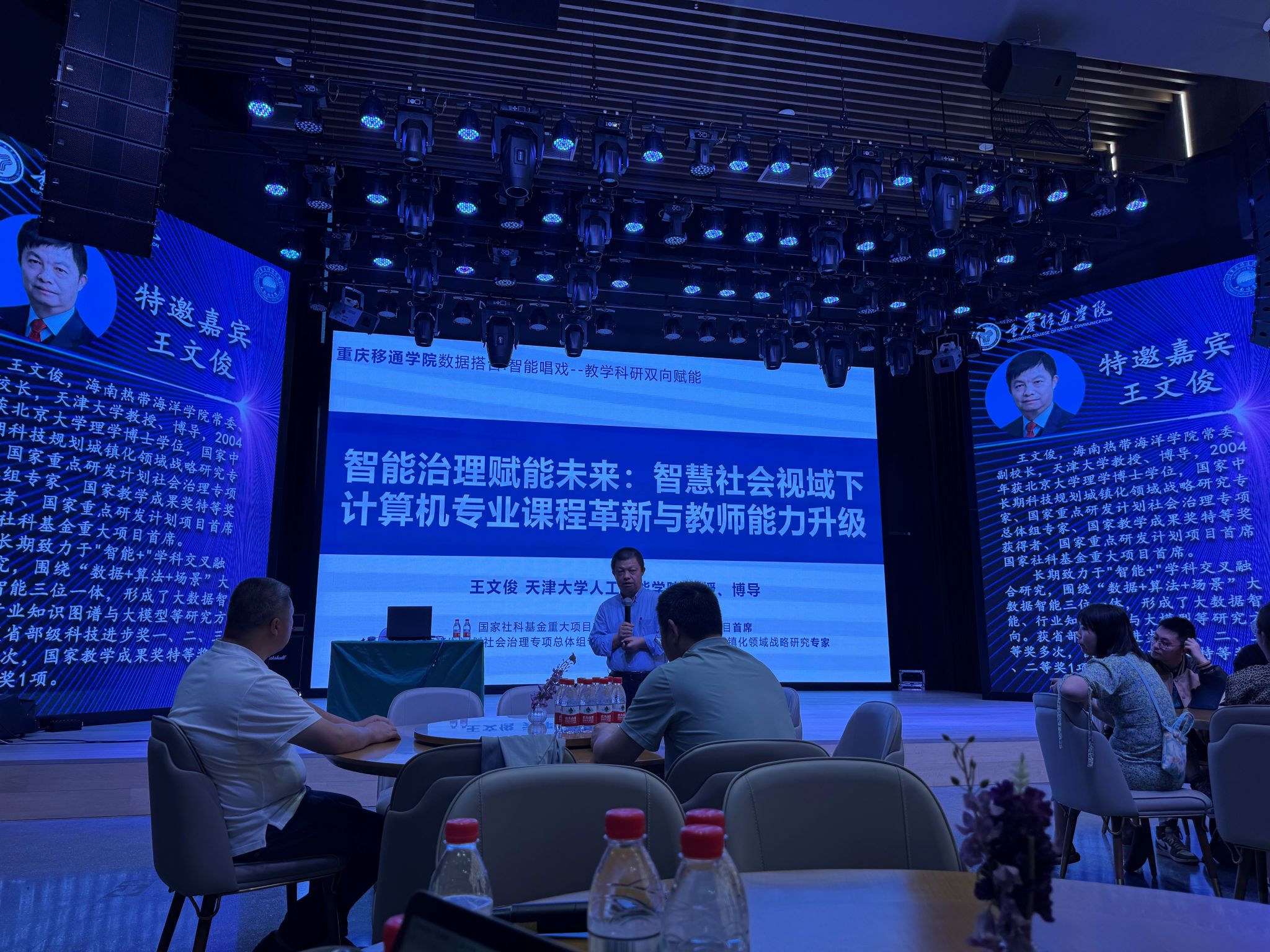 30号下午数字媒体技术教研室主任蔡宇教授主持专题讲座“智能治理赋能未来:智能社会视域下计算机专业课程革新与教师能力升级”在鸣峥鼓剧场展开,王俊文校长从智慧城市、平安建设等四个维度,深入分析了大数据和人工智能技术对社会治理的双重影响。通过生动的案例对比,他阐释了技术发展带来的便利与挑战,并重点探讨了互联网商业发展引发的社会问题。王校长强调,计算机教育应注重系统思维培养,结合DIKIW模型解析数字技术特征,提出"智治框架"理念,倡导将技术伦理教育融入专业课程。