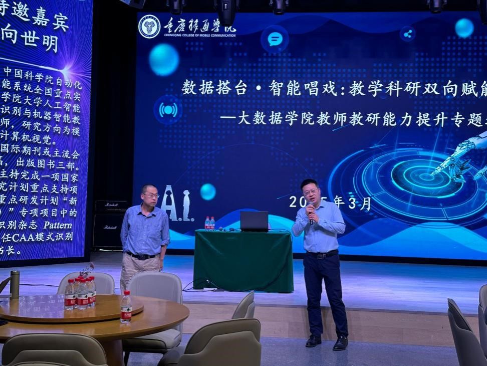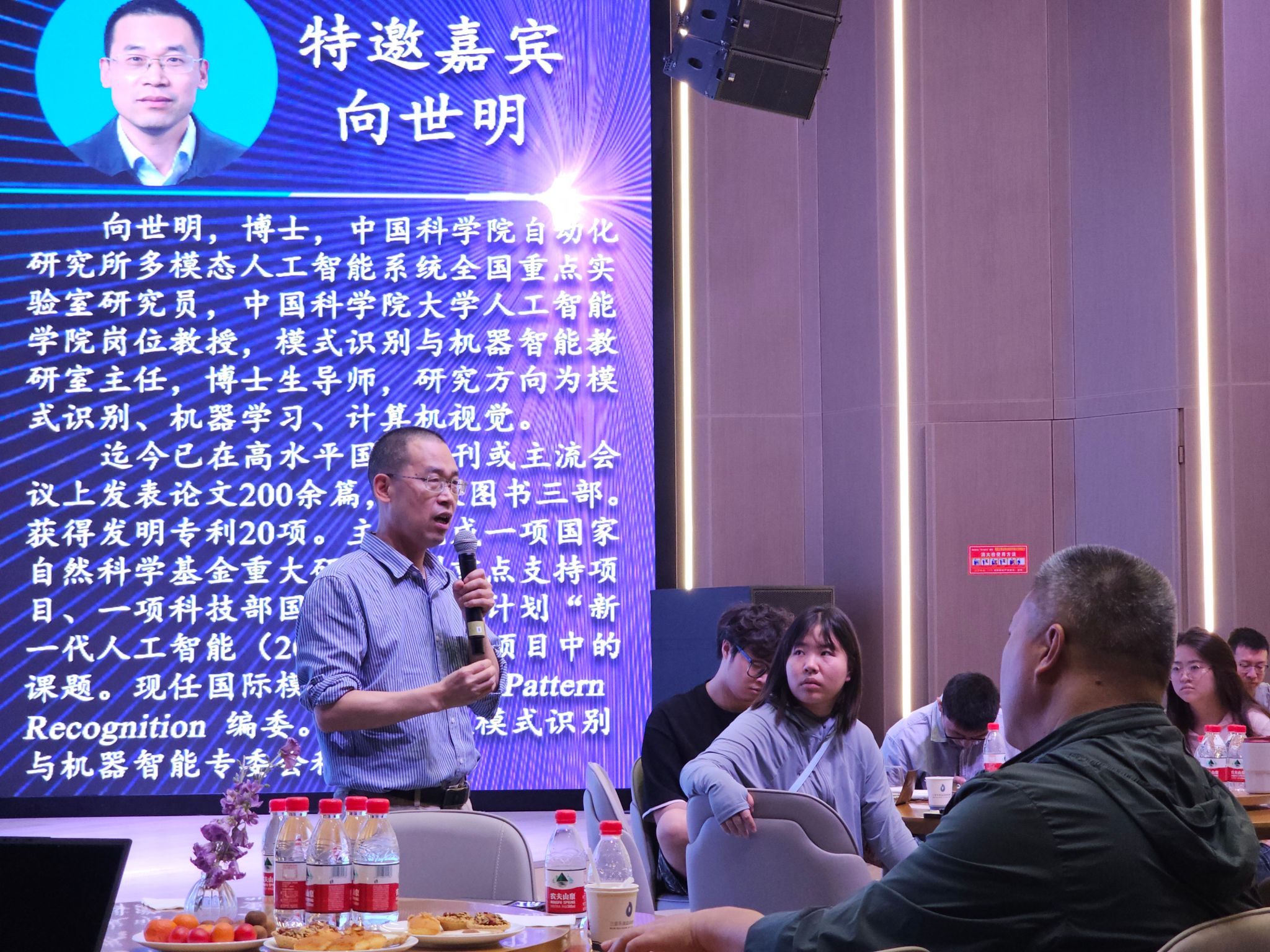 3月31号上午大数据学院邀请了中国科学院自动化研究所多模态人工智能系统全国重点实验室研究员、中国科学院大学人工智能学院博士生导师向世明教授展开了精彩的专题演讲。本次活动由学院副院长吕云山主持,活动主题为“深度学习模型创新驱动下的教师能力双维提升”