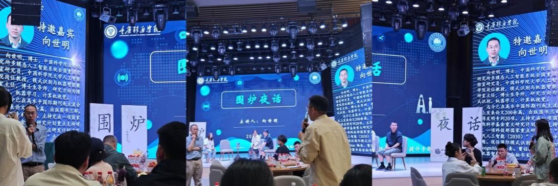 2024年3月31日晚19时,由大数据学院主办的“围炉夜话”活动在鸣筝顾音乐剧剧场成功举办。本次活动以“人工智能新发展态势下数据科学科研部署与教学改革”为主题,特邀行业知名专家、中国科学院大学模式识别与机器智能教研室主任向世明教授担任主讲嘉宾,与大数据学院的大数据教研室主任李静毅、数字媒体技术教研室主任蔡宇、合川校区大数据与计算机科学学院主任张玲及学院骨干教师展开了深度对话,共同探讨人工智能时代下数据科学与教育教学融合发展的创新路径。