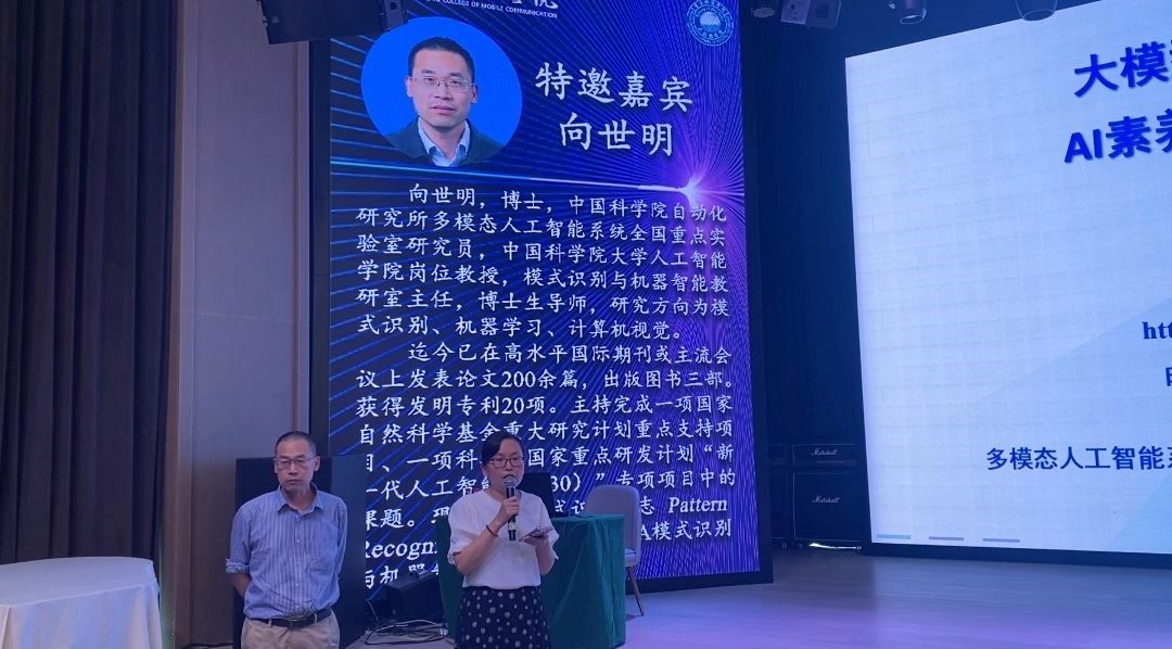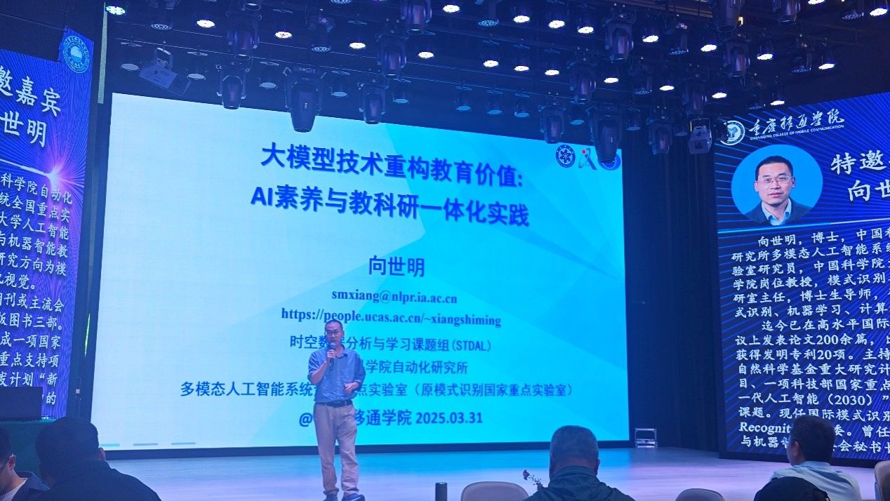 3月31日下午2点,大数据学院成功举办“大模型技术重构教育价值:AI素养与教科研一体化实践”专题学术讲座。活动由学院大数据教研室主任李静毅主持,特邀中国科学院自动化研究所多模态人工智能系统全国重点实验室(原模式识别国家重点实验室)研究员、中国科学院大学人工智能学院岗位教授、博士生导师向世明教授主讲,学院骨干教师全程参与。本次讲座旨在推动教育体系主动拥抱AI技术变革,构建面向未来的“智能教育”新范式。