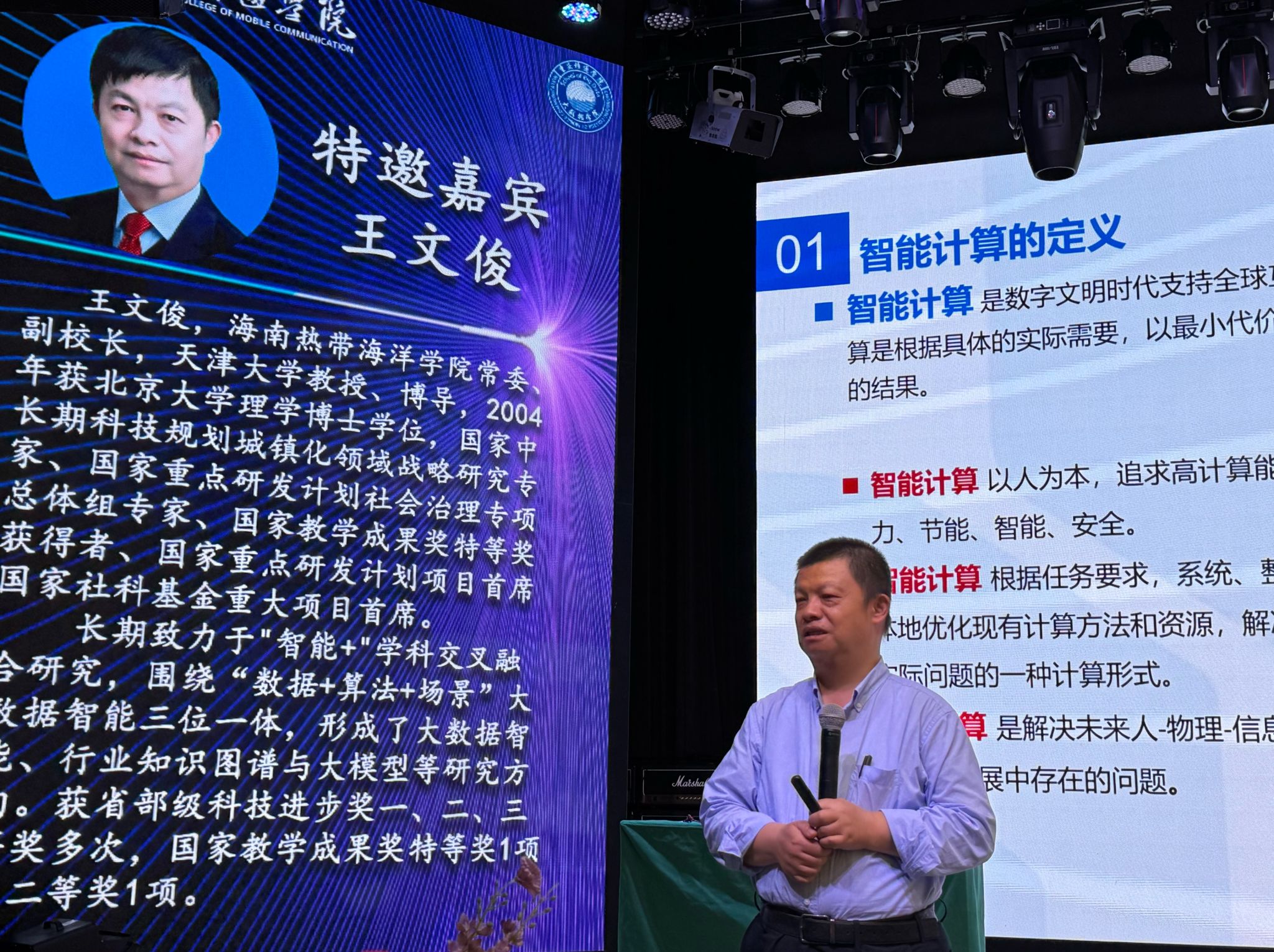 重庆移通学院大数据学院于3月30日上午在三亚天涯蓝海度假酒店举办了"数据搭台•智能唱戏:教学科研双向赋能"专题培训,旨在提升教师教研能力,推动专业化发展。院长潘显兵主持开训仪式,详细介绍了培训日程与内容。本次培训聚焦大数据领域前沿发展,通过系统性课程设计,助力教师掌握专业教育知识,激发创新潜能,促进教学模式革新与教学质量提升,为打造师德高尚、业务精湛的高素质教师队伍奠定基础。海南热带学院副校长王文俊教授应邀开展题为《融合大模型等人工智能技术——赋能智能时代计算机课程创新建设》的专题培训讲座。本次讲座围绕智能计算的技术发展、教育创新及人才培养等核心议题展开,为高校计算机课程体系建设提供了前瞻性思考与实践指导。
