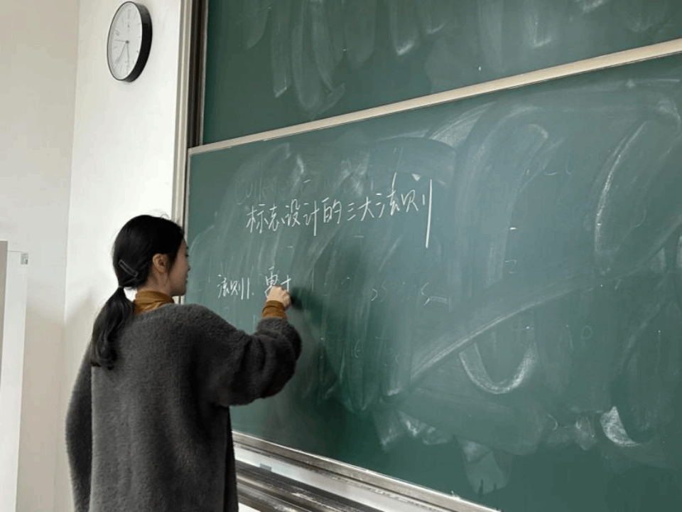 汪雨蝶老师以《标志设计的三大法则》为题,为老师们呈现了一堂精彩的示范课。汪老师巧妙的将“中国铁路”标志设计贯穿整个课程。在知识点讲解阶段,结合转盘道具、经典标志对比、数字化教学平台互动,深入浅出的讲解了“分析需求定方向”、“简洁普适易辨识”、“文化独特有内涵”三大法则,将文化自信、社会责任意识和工匠精神等思政元素润物细无声的融入各个课程教学环节中。课堂练习中,汪老师以四川成都世运会餐厅标志设计为题,引导学生运用数字工具重构地域美食与文化符号,探索“家国情怀的视觉转译”。