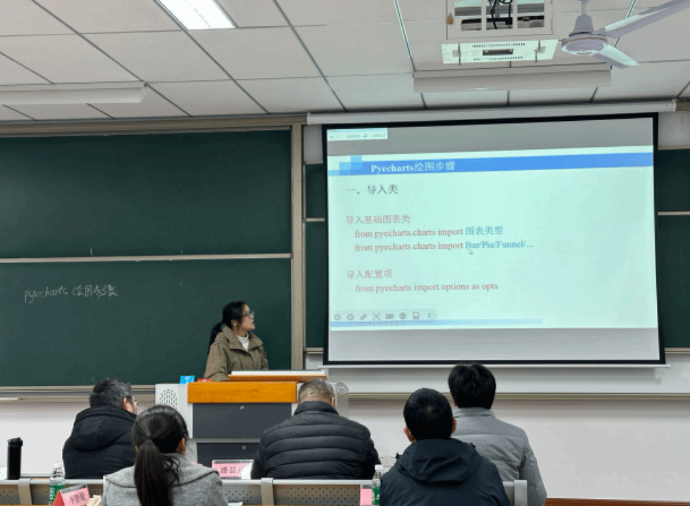 比赛伊始,大数据教研室的胡宗容老师为大家带来了关于 Pyecharts 绘图步骤的精彩讲解。胡老师从四个方面入手,以生动形象的方式阐述知识点,并巧妙地将课程思政元素融入其中,为学生们带来了一堂兼具知识与思想引领的课程。