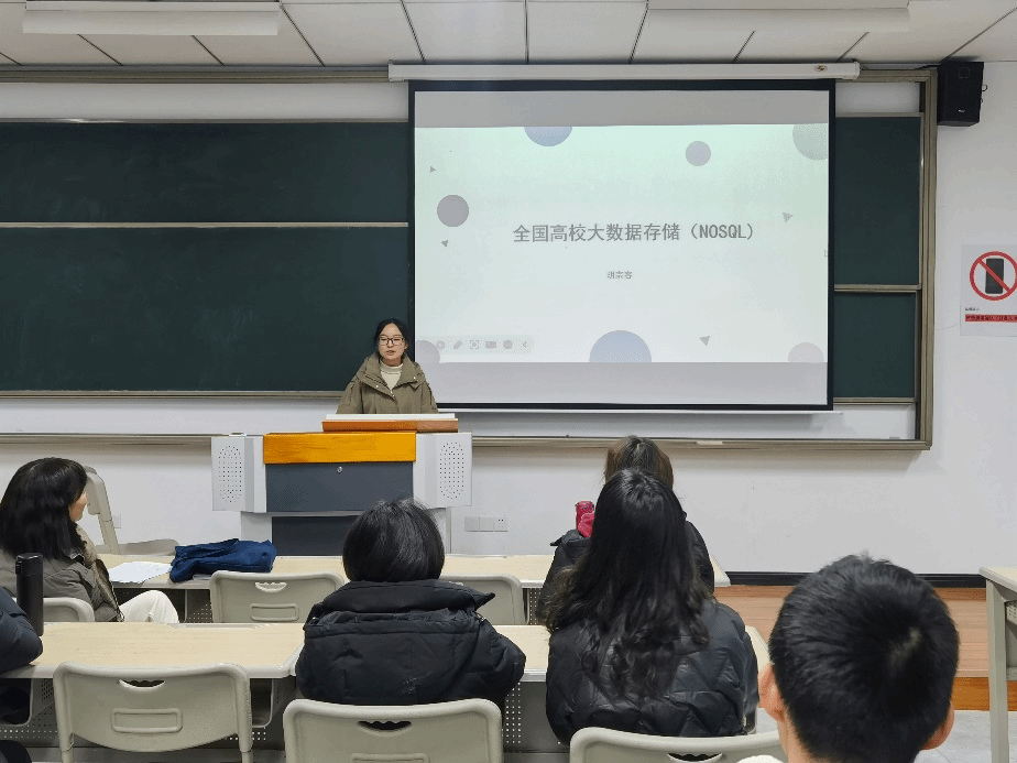 胡宗容老师首先分享了其参与的“全国高校大数据存储NOSQL”培训。培训内容围绕大数据NOSQL四种类型数据库讲解,分别为键值对存储数据库、文档存储数据库、列式存储数据库和图形存储数据库以及它们相应的实战案例分析。胡老师谈到,这次培训是一次充实而富有成效的学习经历。通过系统的理论学习、丰富的实践操作以及深入的案例分析,自己不仅全面掌握了 NOSQL 数据库的相关知识和技能,更重要的是培养了大数据存储技术的思维方式和解决实际问题的能力。