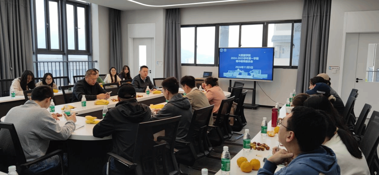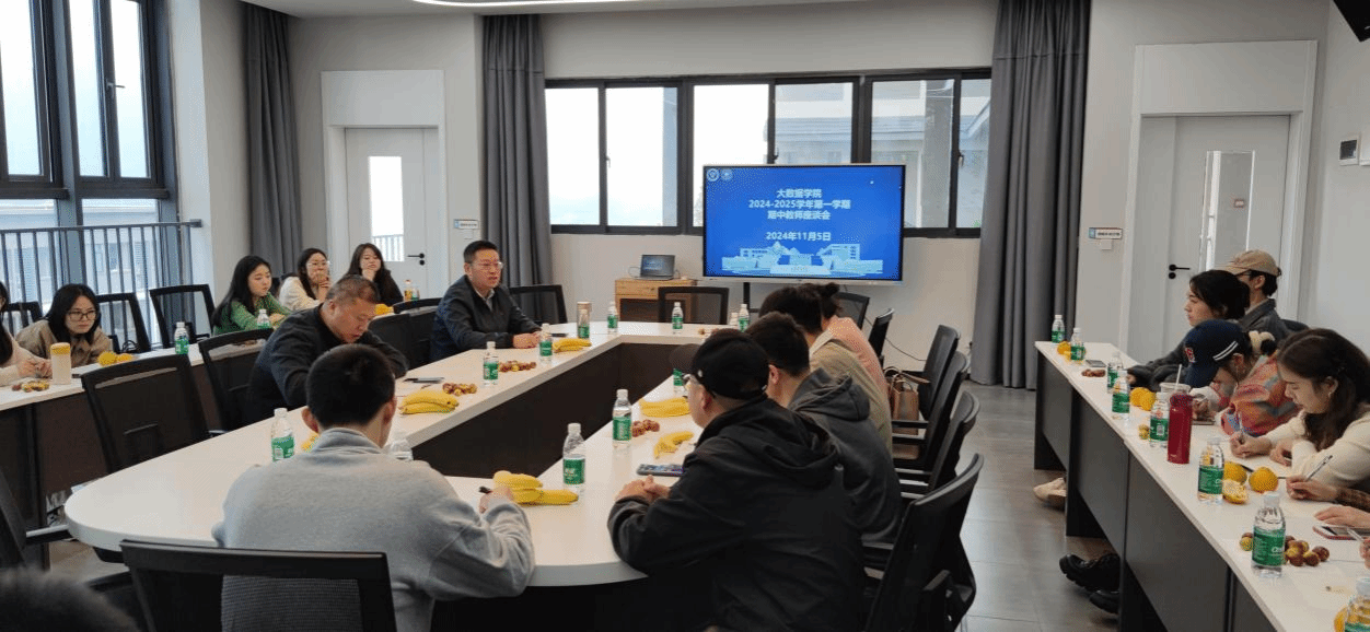2024年11月5日大数据学院于风景如画的玉棠书院地心会议室隆重举办了2024-2025第一学期的期中教师座谈会。此次座谈会旨在搭建一个开放、包容的交流平台,让教师们能够畅所欲言,共同探讨教学资源、课程资源、教学管理以及教学情况等方面的现状与改进之道。