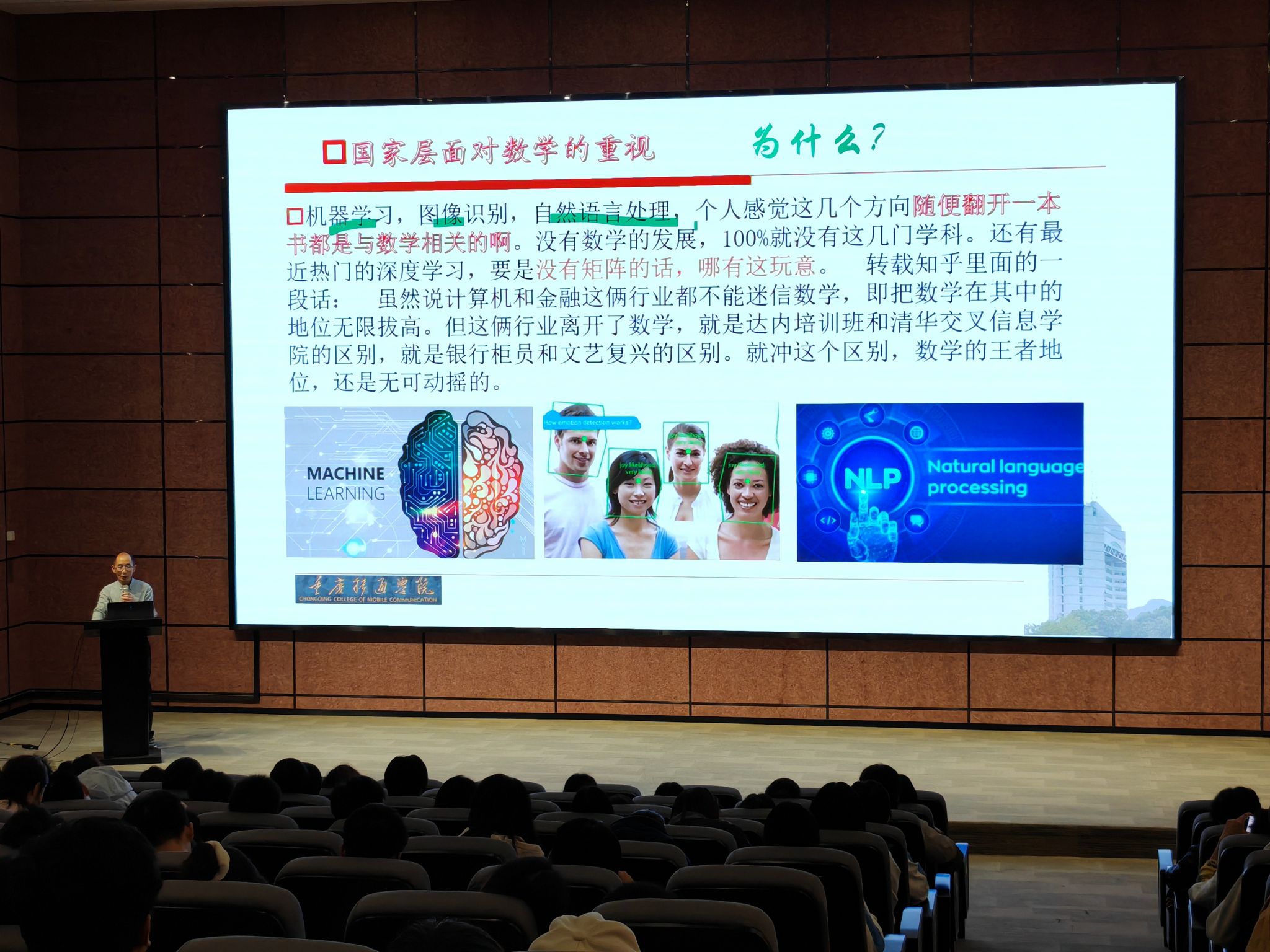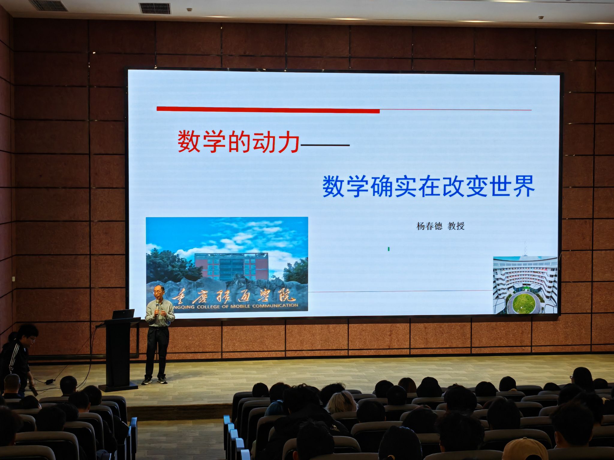 11月1日上午10点,贤者楼423内座无虚席,一场关于“数学的动力——现代数学确实在改变世界”的精彩讲座举行。本次讲座由重庆移通学院合川校区数理教学部主任、三级教授、硕士生导师杨春德主讲,本次讲座由大数据学院院长潘显兵主持,大数据学院与计算机学院的众多师生前来聆听。大家齐聚一堂,共同探寻数学的奥秘及其对现代社会的深远影响。