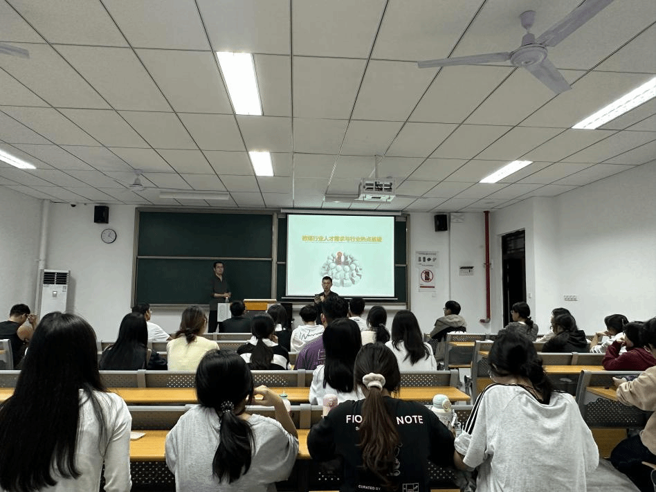 朱经理与在场学生进行了热烈互动,抛出了“你们认为老板想招什么样的人?”的提问。同学们纷纷响应,提出了诸如“具备实践经历、全面发展、出类拔萃”等特质。针对同学们的回答,朱经理给出了独到的见解,他强调老板青睐的是那些一专多能、能够精准对接岗位需求,并且拥有出色口头与书面表达能力的人才。在此基础上,朱经理巧妙地将话题引向了本次讲座的核心——培养具备团队精神和忠诚度的优秀员工。