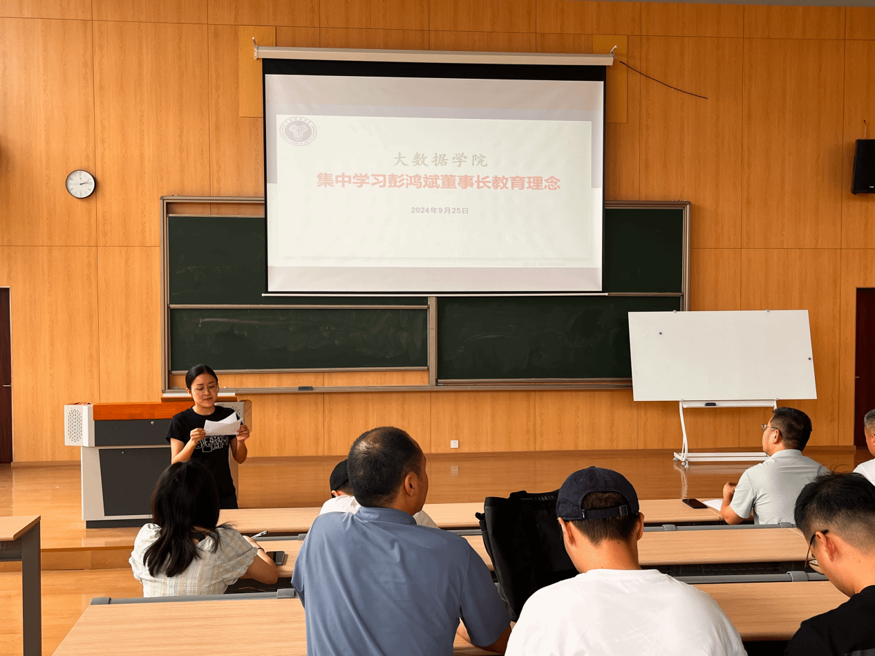为进一步贯彻与落实集团的教育理念,推动学校教育教学改革,培养更多优秀人才,奠定新商科大学理念基础。大数据学院于25日14:00时在玉棠书院阶梯教室开展了集中学习彭鸿斌董事长教育理念交流活动。大数据学院全体教职工参与,共同聆听并学习彭鸿斌董事长的教育理念。