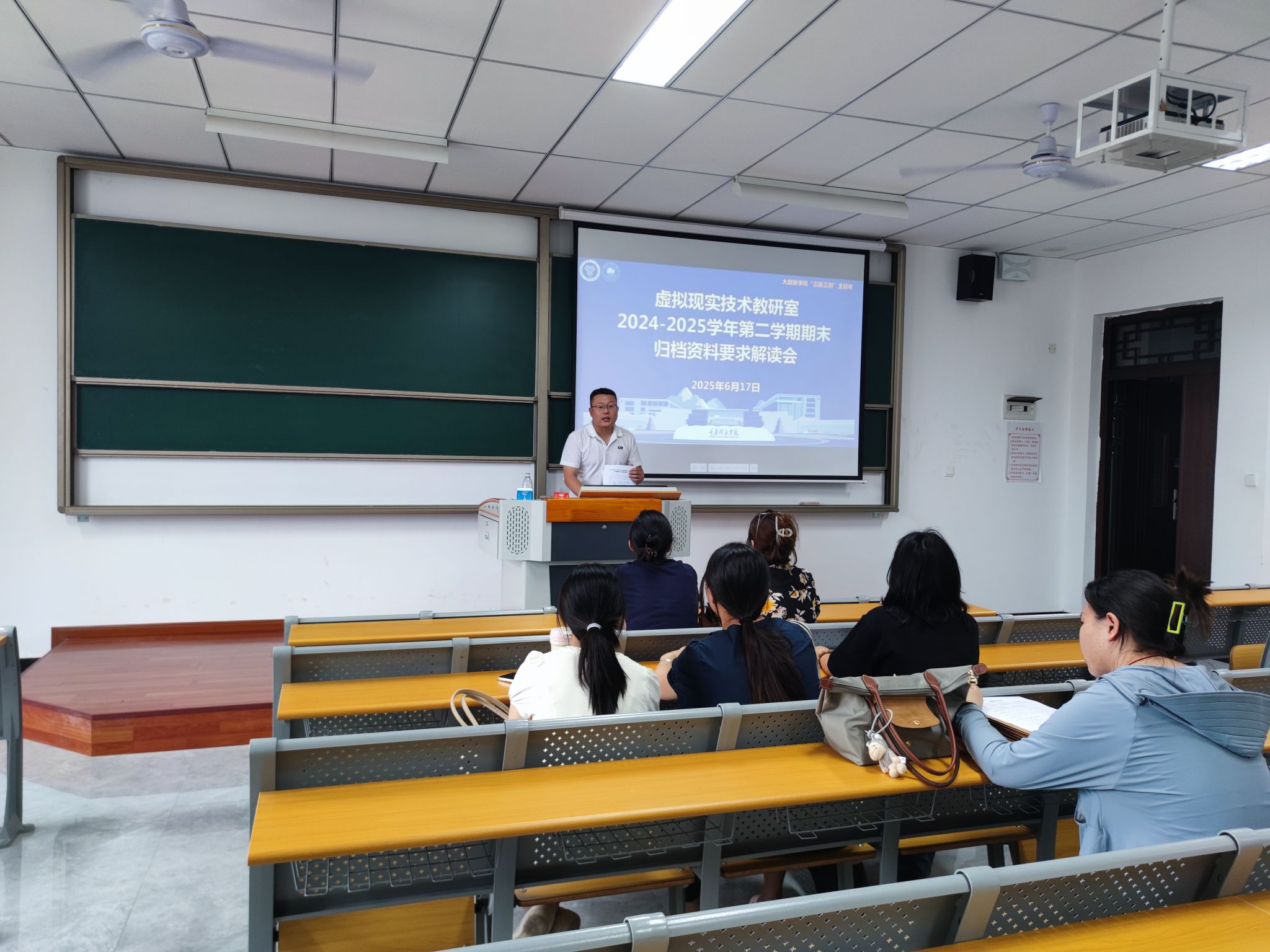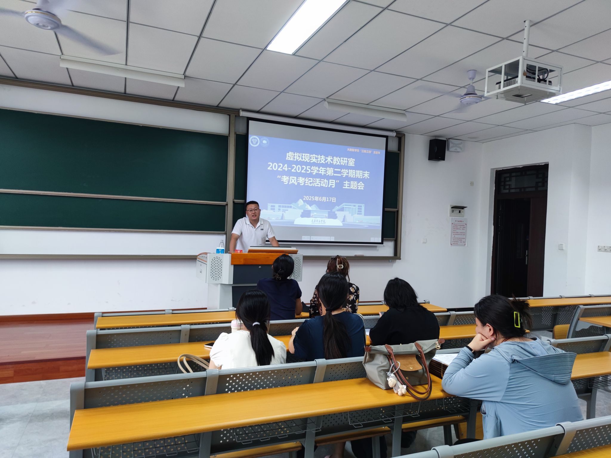 2025年6月17日下午4点,虚拟现实技术教研室在勤者楼410召开期末专题会议,会议由教研室主任闫攀主持,全体教师围绕教学档案归档、考风考纪及学习《一个人的路途也不孤独》展开研讨。