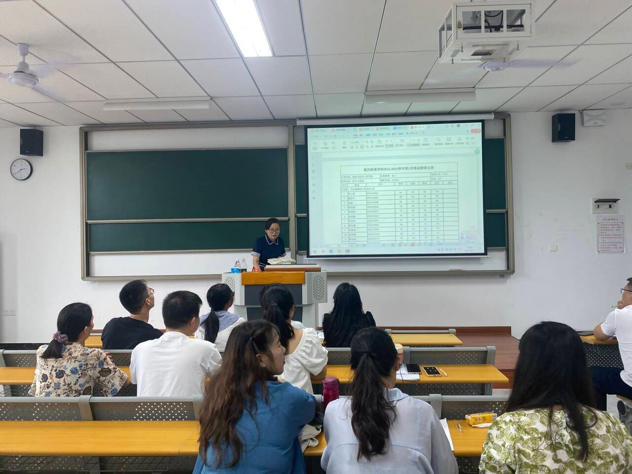 在互动交流环节,教师们积极提问,就实际工作中遇到的难点和疑惑与李主任进行探讨。对于毕业论文教学档案的格式问题、课程考核材料中平时成绩评定的支撑材料收集等问题,现场展开了热烈讨论,大家分享经验、交流心得,进一步加深了对材料规范整理的理解。