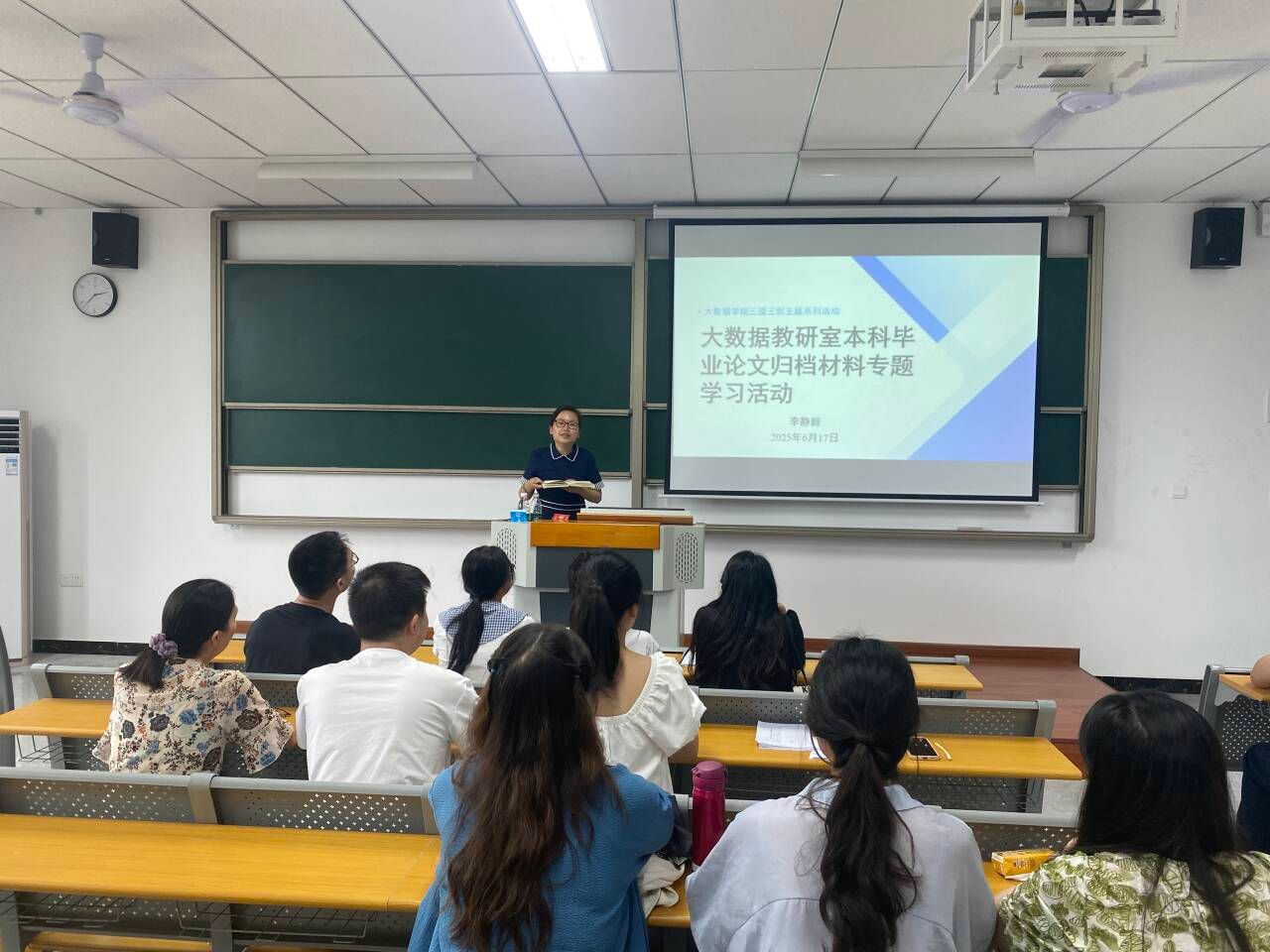 首先,大数据教研室主任李静毅老师对开展此次专题学习活动的重要性进行了强调。她指出,本科毕业论文归档材料与课程考核材料是教学过程的重要记录,不仅是学校教学评估、专业认证的关键依据,也反映了教师的教学质量和学生的学习成果,规范整理这些材料是保障教学工作规范化、科学化的基础,全体教师务必高度重视。