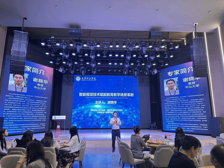 2025年7月21日,“智能视觉技术赋能教育教学场景革新”专题培训在筝鸣顾音乐剧剧场举行。本次讲座由中山大学计算机学院博士生导师谢晓华教授主讲,大数据学院教学副院长吕云山主持,学院全体教师参与培训。