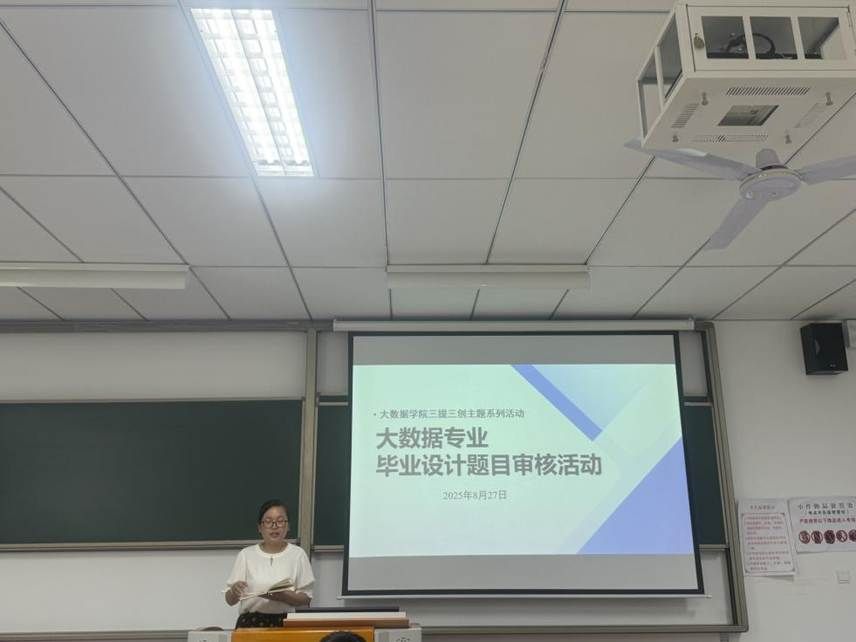 为全面落实学校“三提三创”主题年系列活动,进一步提升我校数据科学与大数据专业学生毕业论文的质量与创新性,促进学生实践能力的培养,大数据教研室于2025年8月27日在勤者楼307顺利召开了2026届毕业论文选题审查会。本次活动由大数据教研室主任李静毅老师主持,全体大数据教研室教师参会。