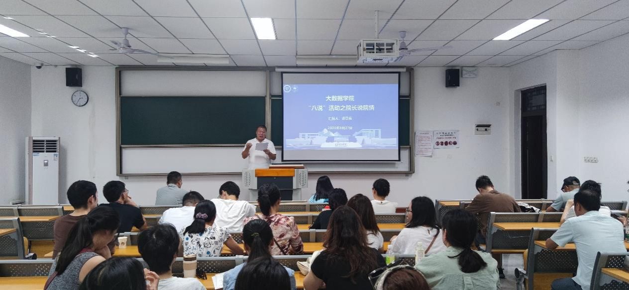 2025年8月28日下午2点30分,大数据学院“八说”系列活动之“院长说院情”专题会议在勤者楼307如期举行。此次会议由大数据学院院长潘显兵主持并主讲,学院全体教师参会。会议旨在通过系统梳理学院发展现状、管理体系、工作亮点及未来规划,进一步统一思想、凝聚共识,为后半学期乃至更长时期的教学、科研与学生管理工作明确方向,助力学院高质量发展。