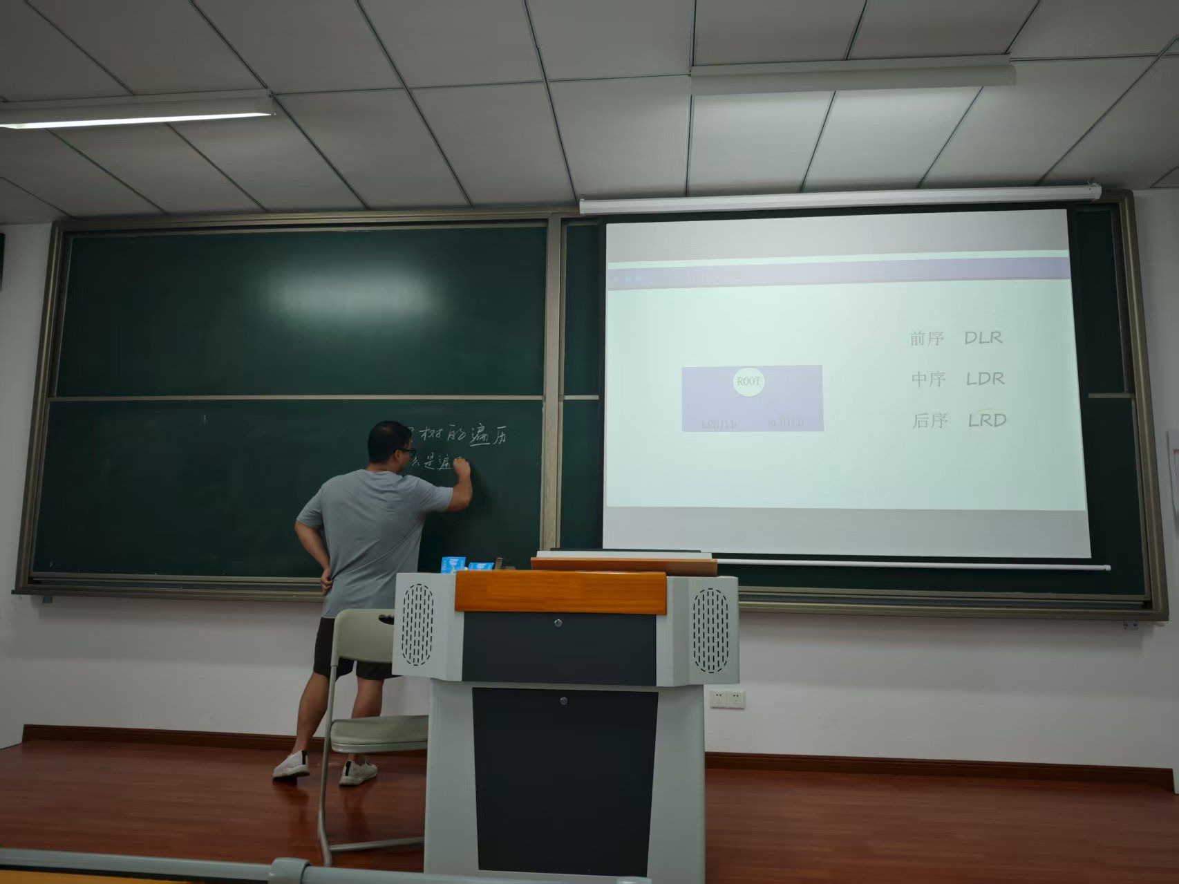 薛润老师最后讲解了"二叉树的遍历"相关内容。他采用实例分析,生动形象地展示了先序、中序和后序遍历的过程与区别。薛老师注重课堂互动,鼓励学生积极参与,营造了良好的学习氛围。