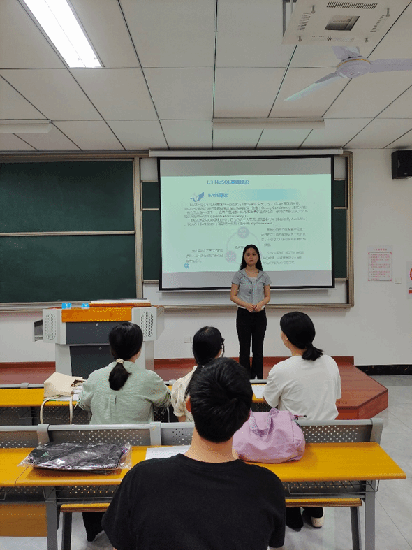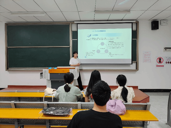 活动伊始,张旭老师以“分布式数据库架构设计”为例进行教学展示,通过对比传统数据库与分布式系统的异同,引入一致性协议、分片策略等核心概念,结合真实项目案例生动阐释技术原理。胡宗容老师随后补充了数据仓库分层建模的讲解思路,提出以“电商场景”为主线串联事实表、维度表等知识点,增强学生的逻辑理解与场景代入感。