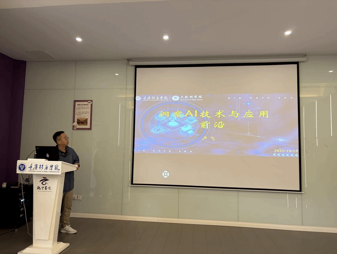 为了拓展学生学术视野、把握科技发展脉搏,2025年10月15日下午,大数据学院于观云书院秋分多媒体教室成功举办“洞察AI技术与应用前沿”专题讲座。本次讲座荣幸邀请到德勤中国人工智能研究院的资深数据科学家、高级经理卢飞老师担任主讲,为学院师生带来了一场关于人工智能的深度解读与前沿洞察。