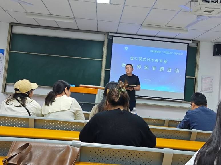 为全面贯彻党的教育方针,落实立德树人根本任务,进一步加强教师队伍职业道德建设,大数据学院虚拟现实技术教研室于2025年10月22日下午4时,在勤者楼510成功举行了师德师风建设专题学习活动。本次活动由教研室主任闫攀主持,教研室全体教师参加。