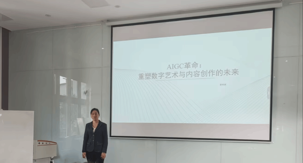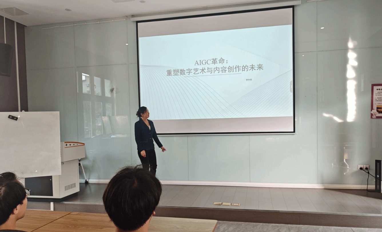 2025年10月28日下午两点,观云书院冬至多媒体教室内座无虚席,由数字媒体技术教研室主办的“AIGC革命:重塑数字艺术与内容创作的未来”主题讲座顺利开讲。宸熙(重庆)网络科技有限公司总裁李中燕受邀担任主讲人,为在场学生带来前沿行业洞见。