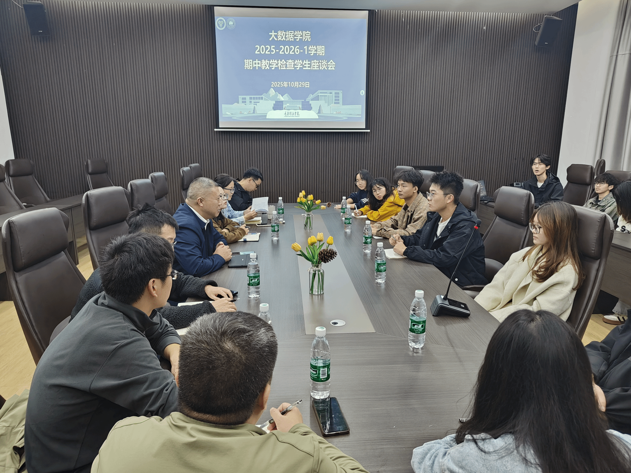 为切实了解同学们在学习生活中的真实情况,精准解决成长过程中的实际难题,进一步拉近师生距离、夯实教学质量基础,帮助学生成长成才,2025年 10月29日上午10:30,大数据学院在横山书院九思会议室召开2025-2026学年第一学期期中教学检查学生座谈会。大数据学院院长潘显兵、党总支副书记阙小梅,教研室主任、任课教师代表、辅导员代表和各年级学生代表们一同参加了座谈会。