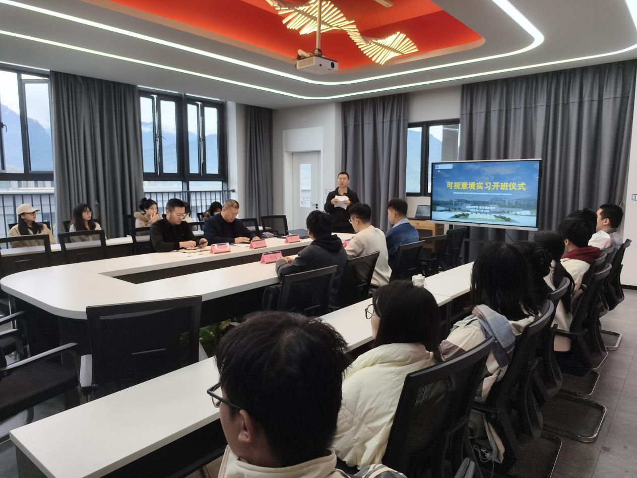 2025年11月10日下午,大数据学院与重庆可视艺境科技有限公司、重庆市无极动画科技有限公司的实习合作开班仪式暨企业座谈会在玉棠书院地心会议室顺利举行。大数据学院院长潘显兵、教学副院长吕云山出席会议,数字媒体技术教研室主任蔡宇主持会议。