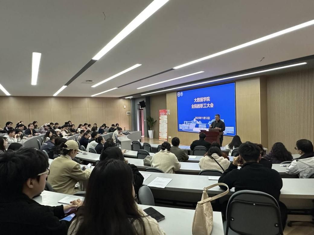 2025年11月12日下午4点,大数据学院在智者楼304会议室召开模拟评估总结与教师教学工作部署专题会。本次会议由潘显兵院长主持,各教研室主任及骨干教师参会,重点围绕上周专家进校模拟评估复盘总结、智慧OA系统操作标准化推进及金蝶流程规范执行等核心议题展开。