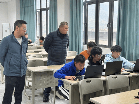 巡查过程中,潘显兵院长和吕云山副院长深入各实习点位,与学生们亲切交流,详细了解他们的实习任务、工作环境及初步成果。潘院长勉励同学们:“此次实习是你们从校园走向职场的关键过渡,要以谦逊态度钻研技术,在真实项目中积累经验,将专业所长转化为就业竞争力”。吕院长则强调,实习不仅是技术提升的契机,更是职业素养养成的关键阶段。要求学生在实习中保持日志记录,定期总结反思,并鼓励大家积极与企业导师沟通,将学院所学的理论知识与行业实践紧密结合。