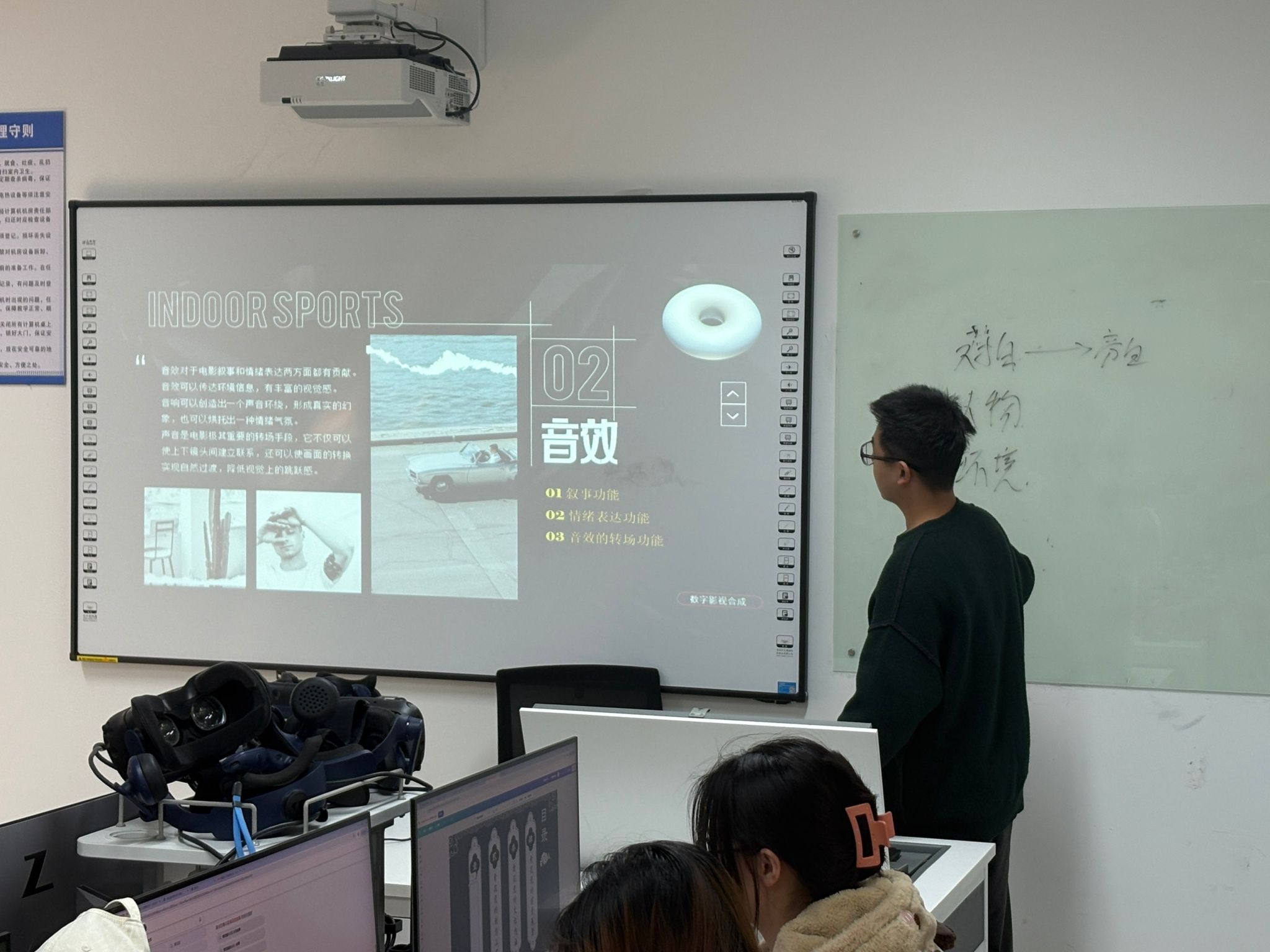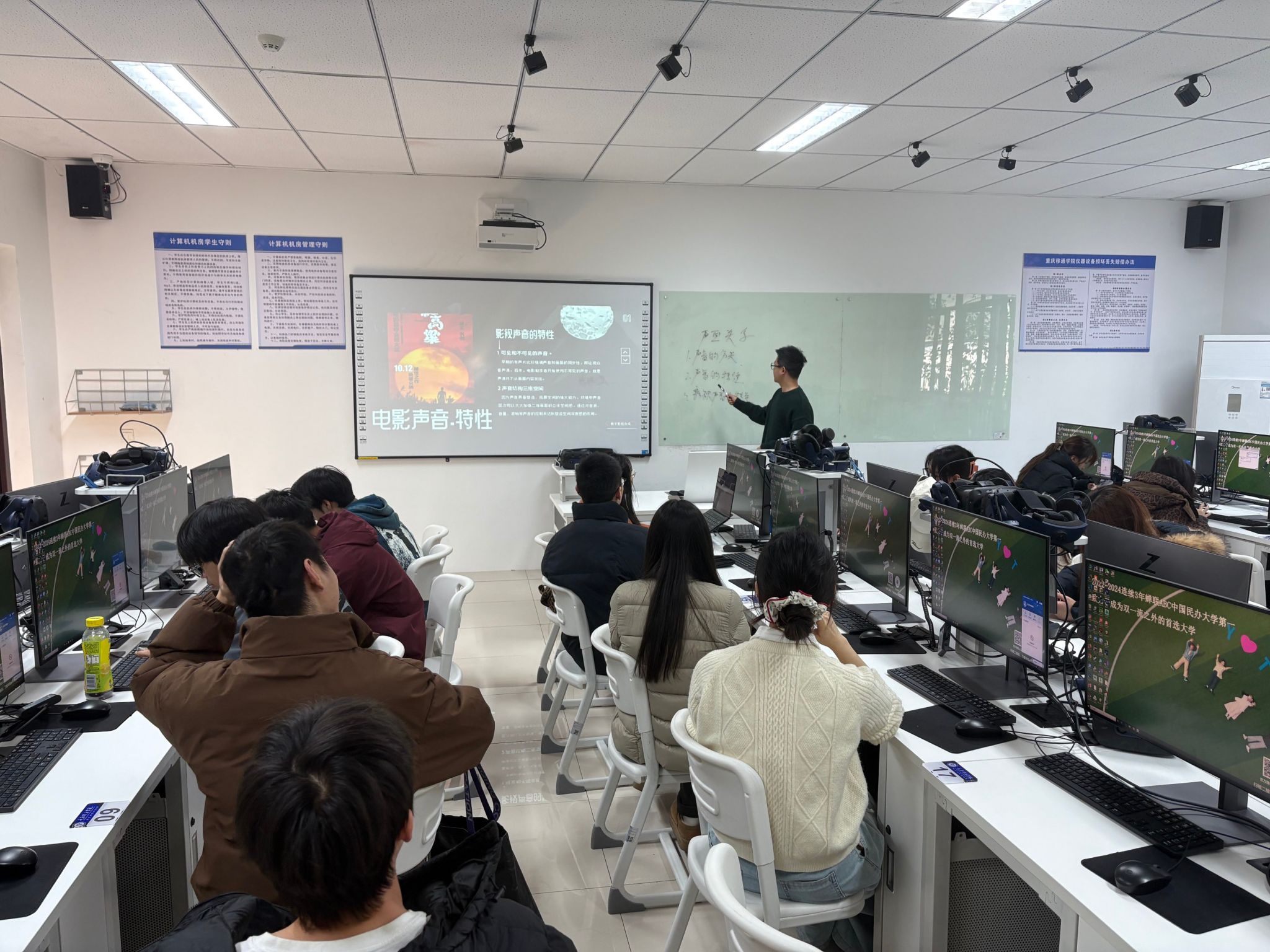 为深化课堂教学改革,提升教师专业素养与教学能力,打造高质量的数字媒体艺术专业课程,2025年11月13日下午,一场聚焦于影视声音艺术的深度磨课活动在实训楼314教室如期举行。本次活动由数字媒体艺术教研室组织,旨在通过集体研讨,共同打磨《数字影视合成》课程的教学设计与实施细节。课程主讲教师何雨程老师围绕“影视声音的特性和运用方法”这一核心内容进行了精彩的讲授与展示,汤嵛猗、孙路、廖德春、于淼、杨钧清、杨钧友等教师全程参与研讨。