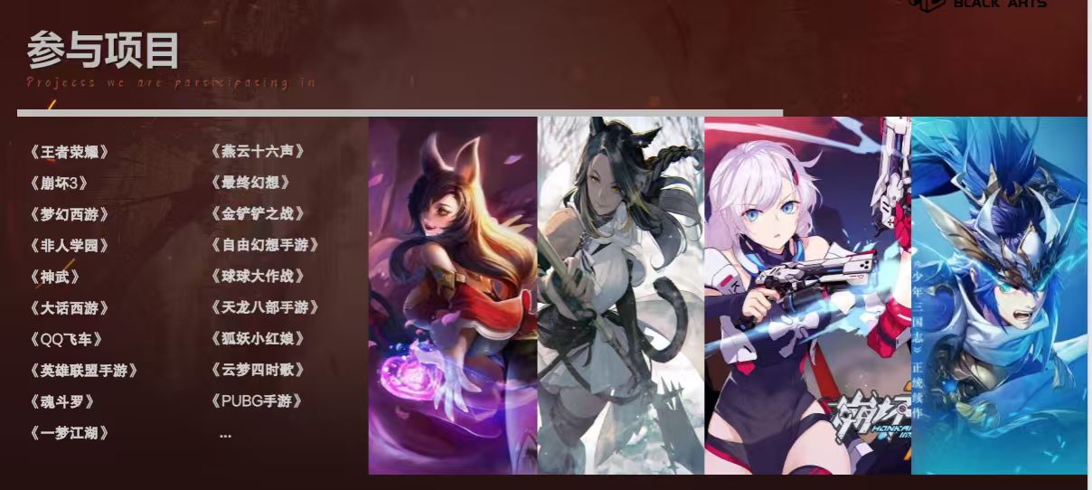 成都黑格子科技有限公司成立于2014年,拥有400人+专业团队,涵盖美术设计、技术研发等多领域人才,业务范围涵盖3D游戏动作、2D游戏动作、2D游戏动画、3D游戏动画、影视动画等等范围,其参与《王者荣耀》、《崩坏3》、《英雄联盟手游》等一线游戏项目的制作,其兄弟公司云海天聚科技有限公司曾参与《哪吒之魔童闹海》项目制作。