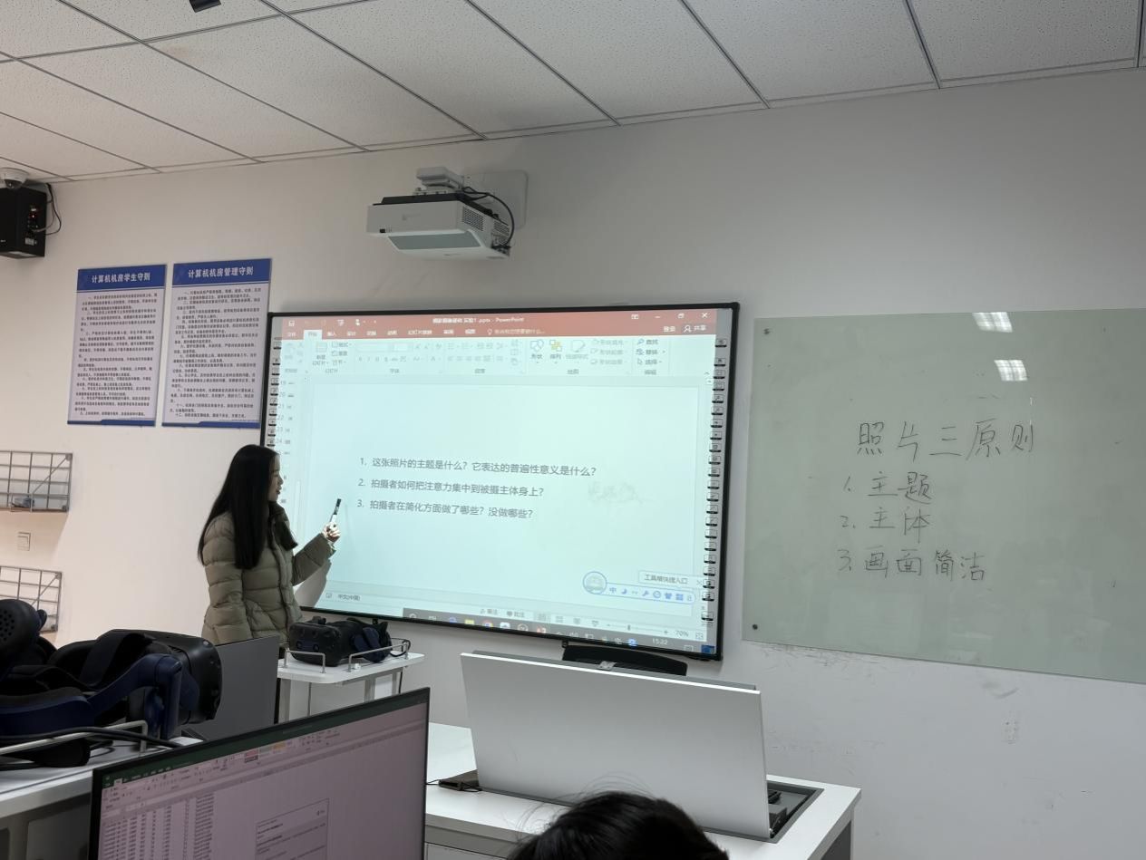 为深化摄影摄像课程教学改革,提升教师教学水平,2025年11月25日,数字媒体技术教研室磨课小组在实训楼303教室,针对由于淼老师主讲的《摄影摄像基础》课程开展了一场深入的磨课活动。本次磨课聚焦“主题、主体、简洁——照片三原则的协同运用”这一核心内容,教研室多位骨干教师参与听课研讨,共同探索教学优化路径。