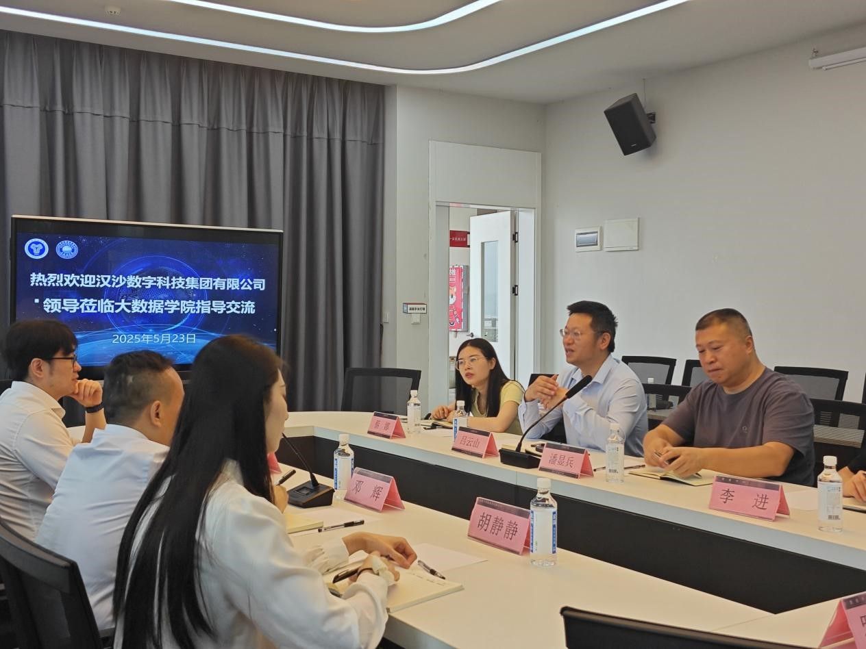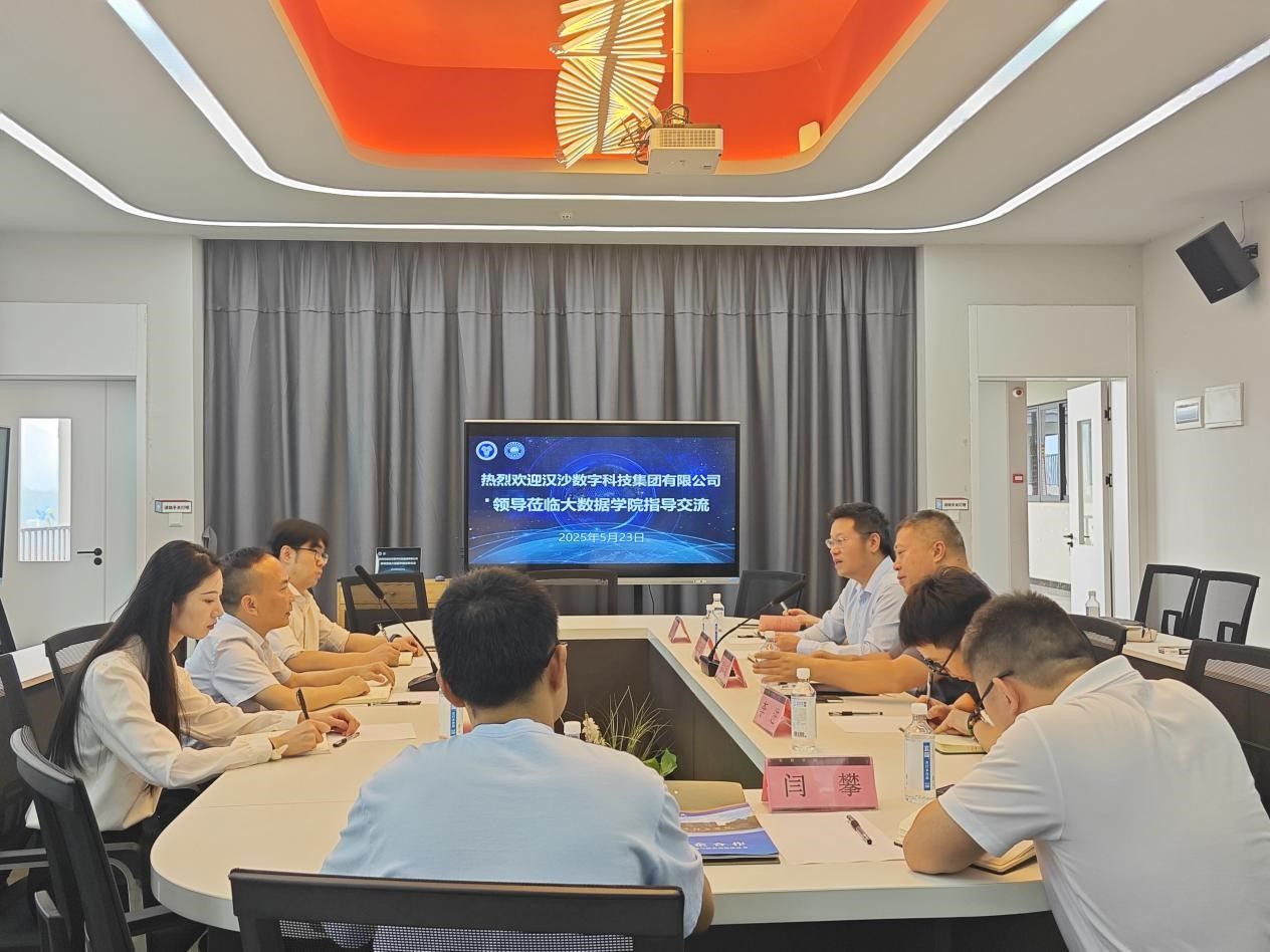 5月23日上午9:00,大数据学院与汉沙数字科技集团校企合作交流会在玉棠书院地心会议室召开。本次会议以"深化产教融合,共育数字人才"为主题,旨在通过校企合作推动虚拟现实技术、数字媒体技术等专业的建设与发展。汉沙数字科技集团董事长邓辉、副总经理谢理成等企业代表,大数据学院院长潘显兵、教学副院长吕云山以及教师代表共同出席了本次会议。