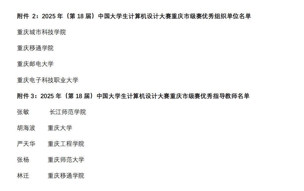 本校师生在本次比赛中表现优异,共斩获73个奖项,包括8项一等奖、27项二等奖和38项三等奖,获奖总数创历史新高。中国高教学会主办的中国大学生计算机设计大赛(Chinese Collegiate Computing Competition,简称“4C” )是 A类赛事,自首届2008年至今已举办了18届。此次竞赛,重庆移通学院学子在比赛中表现优异,斩获多项大奖。大数据学院作为本次比赛的组织学院,凭借出色的组织工作以及所有参赛的同学的优异表现,重庆移通学院还荣获2025年中国大学生计算机设计大赛重庆市级优秀组织单位称号,指导教师林迁被授予市级优秀指导教师荣誉。这一成绩充分展现了学校在计算机设计与创新教育领域的卓越实力。