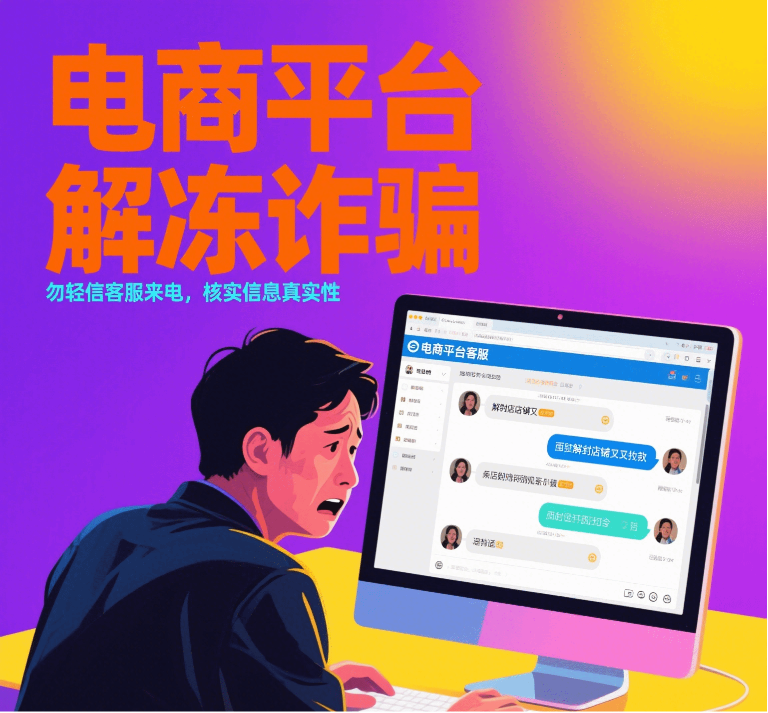 2025年1月16日,某电商平台商家收到一条客服私信,称其商铺因多人举报涉嫌虚假销售,现已被冻结,无法进行交易。事主担心生意受到影响,就急忙询问对方如何解冻。对方表示,只要向指定账户内交纳50000元保障金即可成功解冻。事主信以为真,立刻向该账户进行转账。当事主询问对方自己的商铺何时能恢复正常交易时,发现自己已被拉黑,意识到被骗,于是报警。