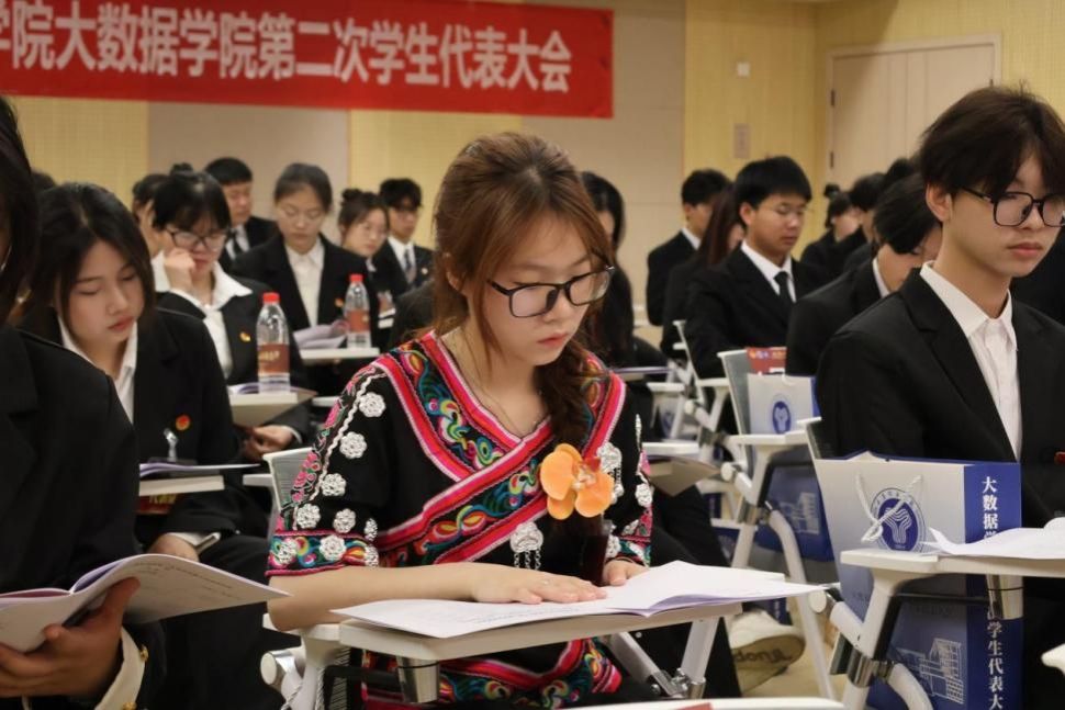 4月11日,大数据学院第二次学生代表大会于綦江校区南洲食堂5楼综合路演中心盛大召开。60位学生代表怀揣着责任与热情齐聚于此。大会在激昂的国歌声中正式拉开帷幕,学院学生党支部副书记雷淑娟、校学生会指导老师曹誉莹依次宣读批复,为大会奠定了坚实的基础。各兄弟学院精心准备的祝福视频和10余份真挚的贺信,瞬间点燃了现场热烈的氛围。学院学生党支部书记阙小梅发表讲话,对学生会过去的工作给予充分肯定,并为未来的发展指明方向,提出了四点饱含期望的建议。在本次大会中,学生会创新开展提案征集工作,涵盖多个领域,充分调动了学生参与学校事务管理的积极性。这次大会以高标准的流程管理、高浓度的创新活力、高实效的质量落地,展现了大数据学院的校园民主实践的高度与温度。