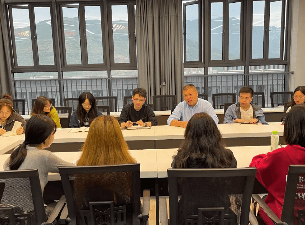 落叶知秋,岁月如歌。为了更好地了解学生的期盼和诉求、更有针对性地解决同学们的各种问题。2024年10月24日16:00,重庆移通学院綦江校区大数据学院2024-2025学年第四期院长座谈会在玉棠书院地心会议室举行,参与本次座谈会的人员有大数据学院院长潘显兵,辅导员代表孙权伟,教师代表独潇、赵江芙,以及2022级和2024级数据科学与大数据技术专业12名学生代表。