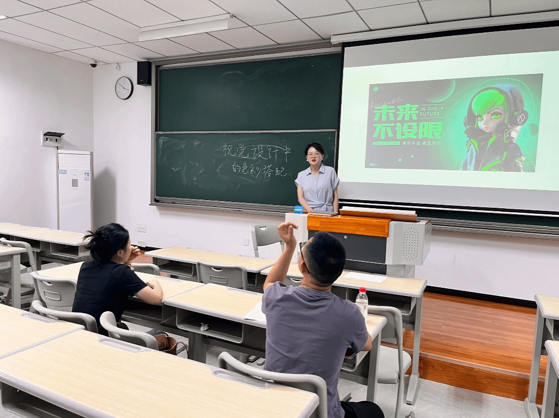 虚拟现实技术教研室教师吴卉玲以《虚拟现实技术专业导论》为主题,从技术发展历程切入,深入讲解原理、应用场景及未来趋势,并在实验室现场演示VR技术,带领教师亲身体验虚拟世界的魅力,激发了探索热情。