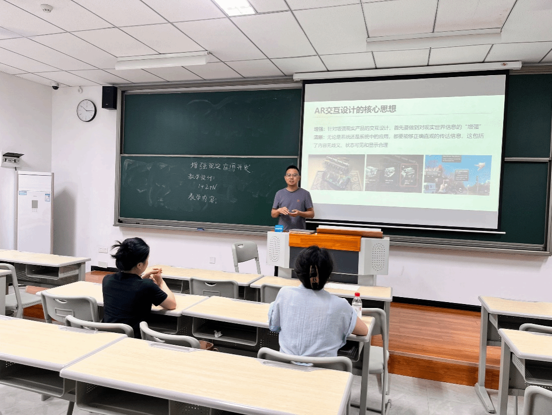 本次磨课活动汇聚了数字媒体技术教研室与虚拟现实技术教研室的四位教师——罗小波、熊文丽、吴卉玲、钟钰璐,他们带来了精彩的专业课程分享。活动伊始,数字媒体技术教研室教师罗小波以《增强现实应用开发》课程为核心,结合前沿应用案例,生动展示了增强现实技术在教育、娱乐、工业设计等领域的应用潜力,激发了教师对技术创新与教学融合的思考。