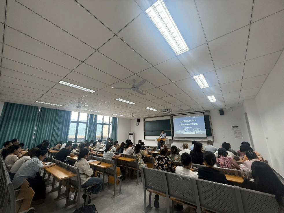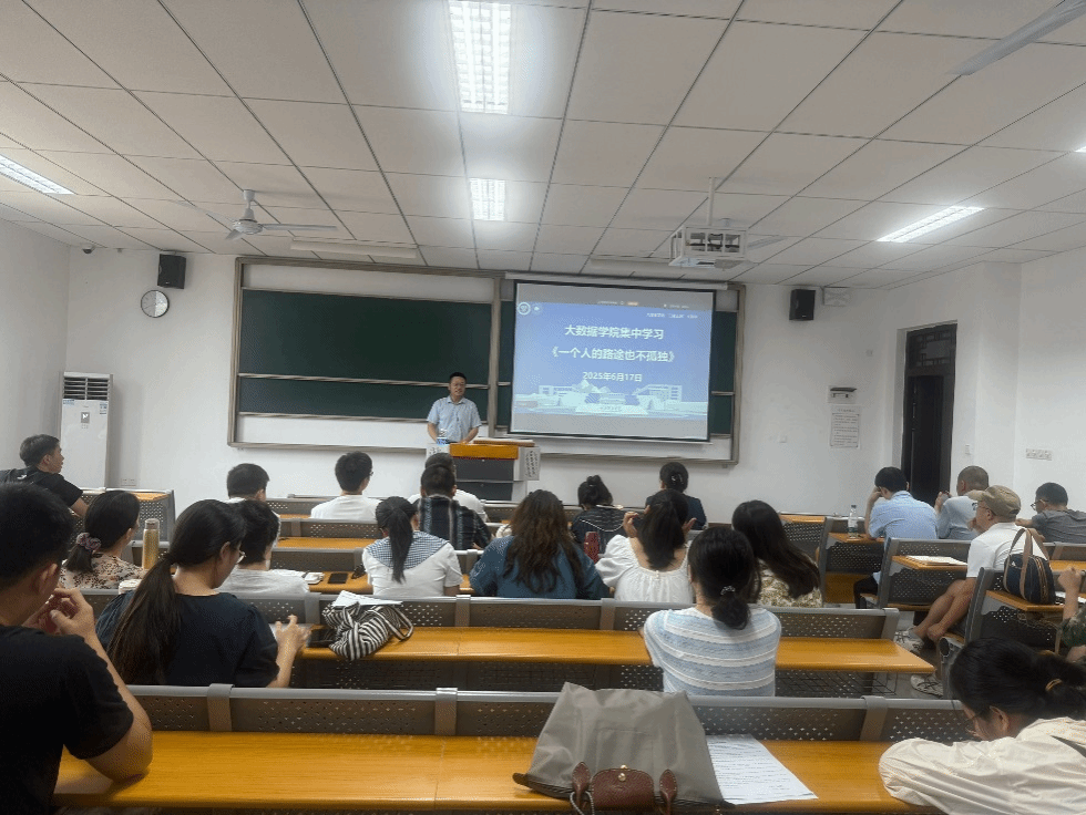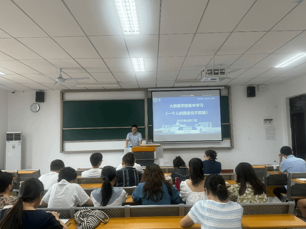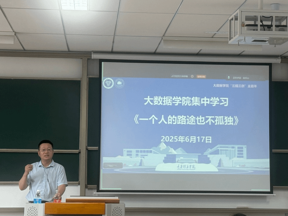 活动伊始,吕院长带领大数据学院教师学习《一个人的路途也不孤独》。吕院长分享了他的三点感悟。第一,坚守在现场教育,网络教育代替不了现场教育。现场教育的不可替代性在技术狂飙的时代愈发凸显。当多数院校斥资千万建设信息化系统时,学校始终将资源投向电影院、剧场、音乐厅等线下场景。互联网的发展并未减少人类对在场性的需求,相反,科技越发达,面对面的情感共鸣与身体实践越显珍贵。书院制下的晨读讨论、营地教育中的野外协作、竞技体育里的汗水交织,让学生在真实互动中习得协作能力,在团队击掌中构建抗挫折的心理韧性。