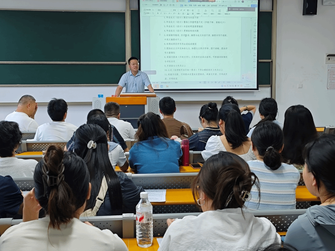 吕院长在会上强调了毕业论文(设计)和教学资料归档工作的重要性,指出规范化的归档不仅是教学质量的重要体现,也是迎接本科教学评估和专业认证的基础性工作。他要求全体教师务必严格按照学校及学院的相关规定,高标准、高质量完成本学期教学资料的整理与提交。