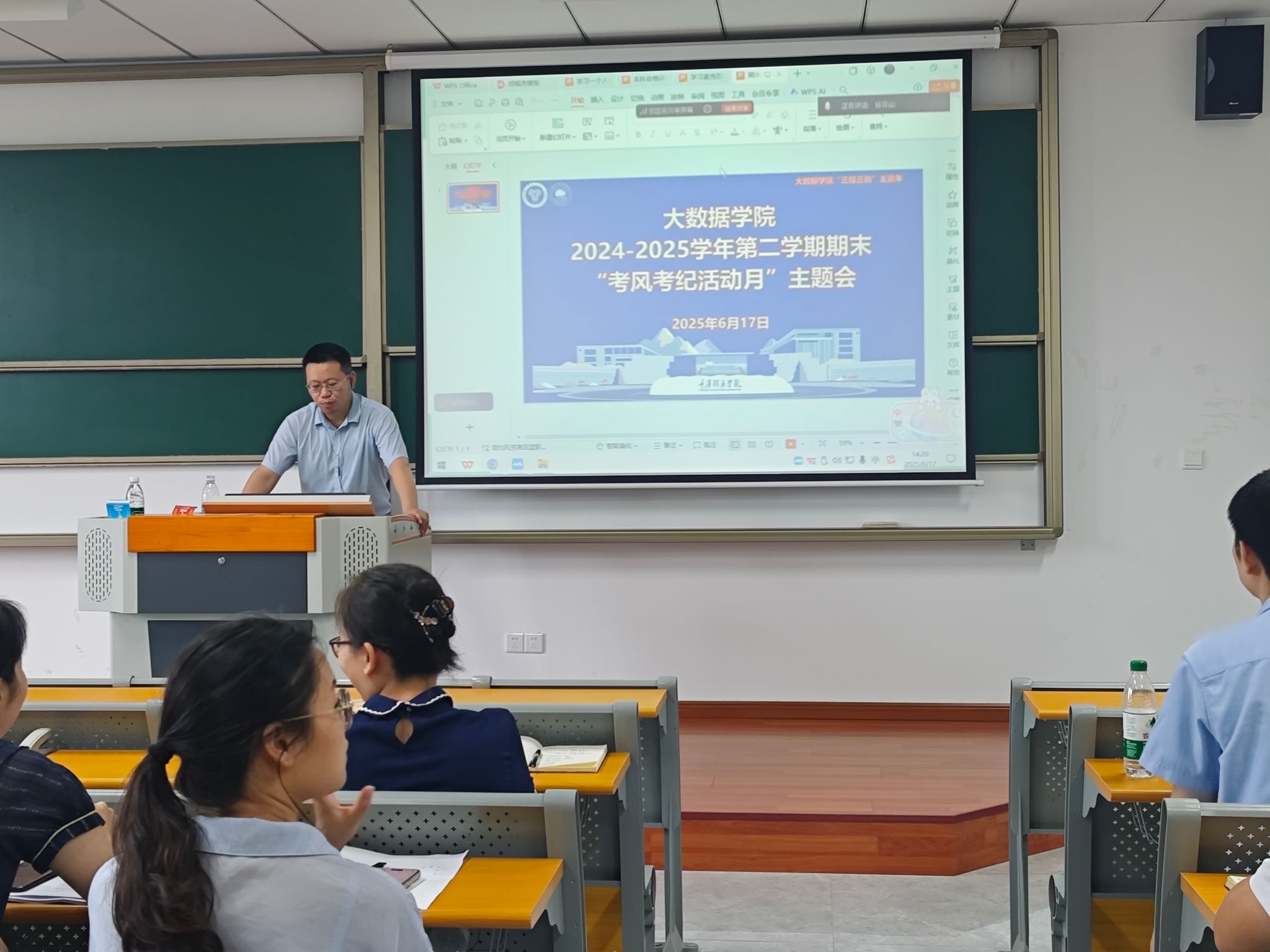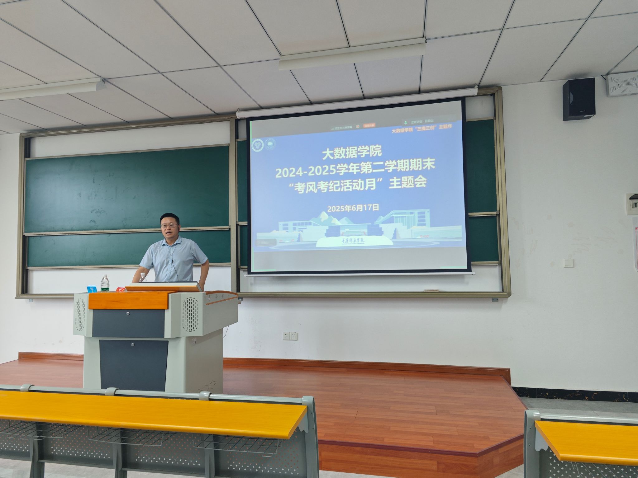 为进一步严肃考试纪律,强化考风考纪教育,确保期末考试公平、公正、规范有序进行,2025年6月17日,大数据学院在勤者楼410召开考风考纪活动月专题会议。会议由副院长吕云山主持,学院全体教师参加。