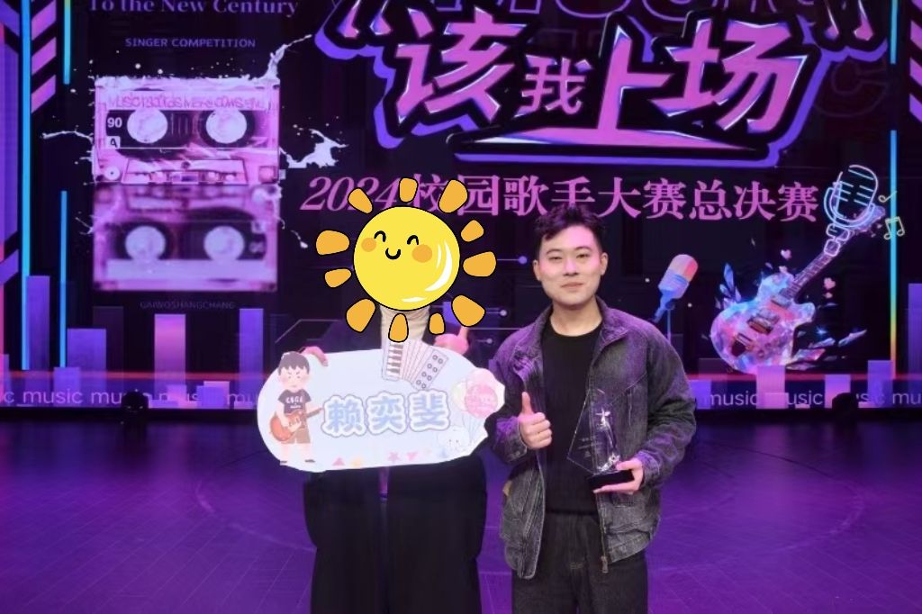 为了提升学业他选择升本来到重庆移通学院大数据学院数字媒体技术专业。他当时的目标很简单,学习-毕业-找工作。这是一种逃避,他不愿在触及舞台。也许是心底的火种仍未熄灭,2023年9月底,偶然的一次机会他参加了学校大艺团宣传岗位的面试,想着可以利用自己的专业去做点事。但没想到误打误撞的参加了当年迎新晚会的面试试唱,在试了两首歌后老师说让他以乐队主唱的身份来参加这一次的迎新晚会。当时的小赖同学又激动、又担心、又想去推脱,担心自己已经多年没上过台,不确定自己还行不行。但他想起了他的声乐老师告诉他的一句话“自信才是舞台上最好的舞美”,这一次他要全力以赴的去表演,珍惜这来之不易的机会。经过了十五天没日没夜的排练,终于呈现了一场完美的演出。当然,也让他彻底告别了这几年那个不自信的自己。