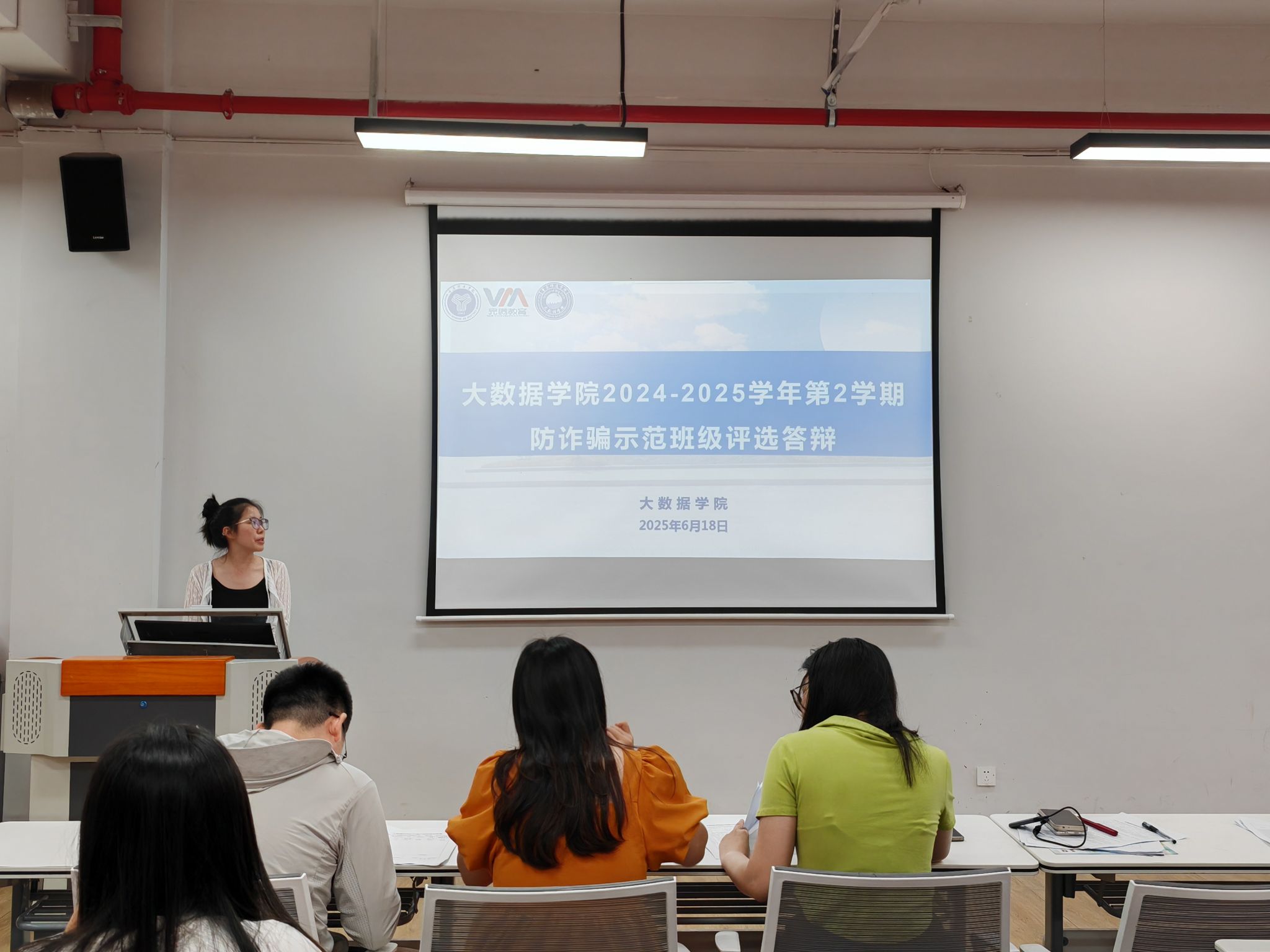 为提升学生防诈意识,筑牢校园安全防线。2025年6月18日下午16:00,大数据学院2024-2025年第二学期防诈骗示范班级评选答辩在玉棠书院扎堆朋辈空间举行,大数据学院学工办主任李进老师和4名辅导员担任评委。