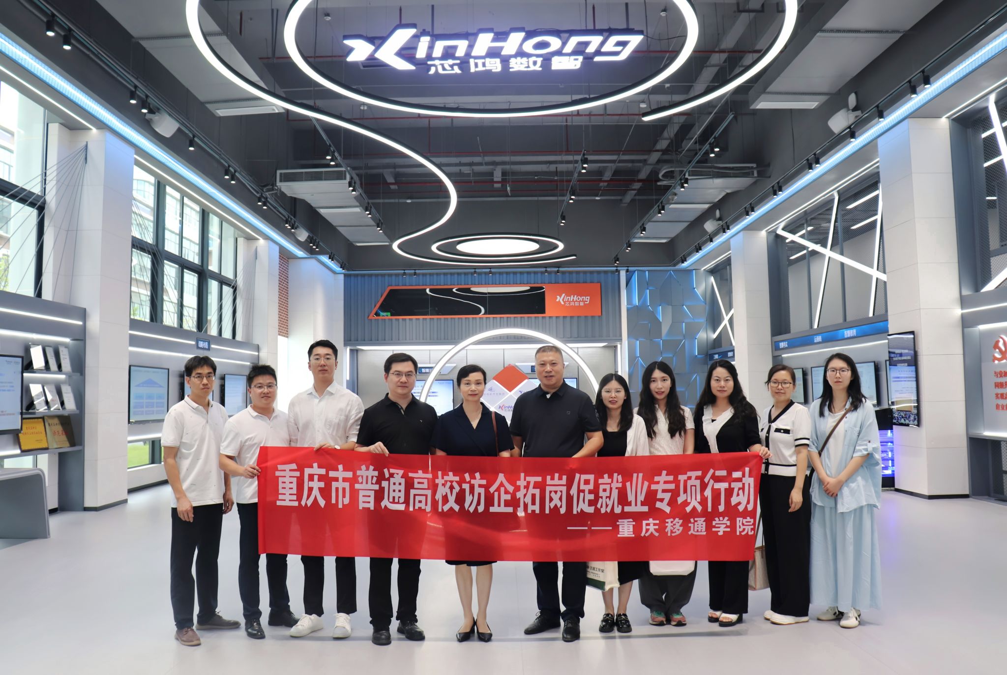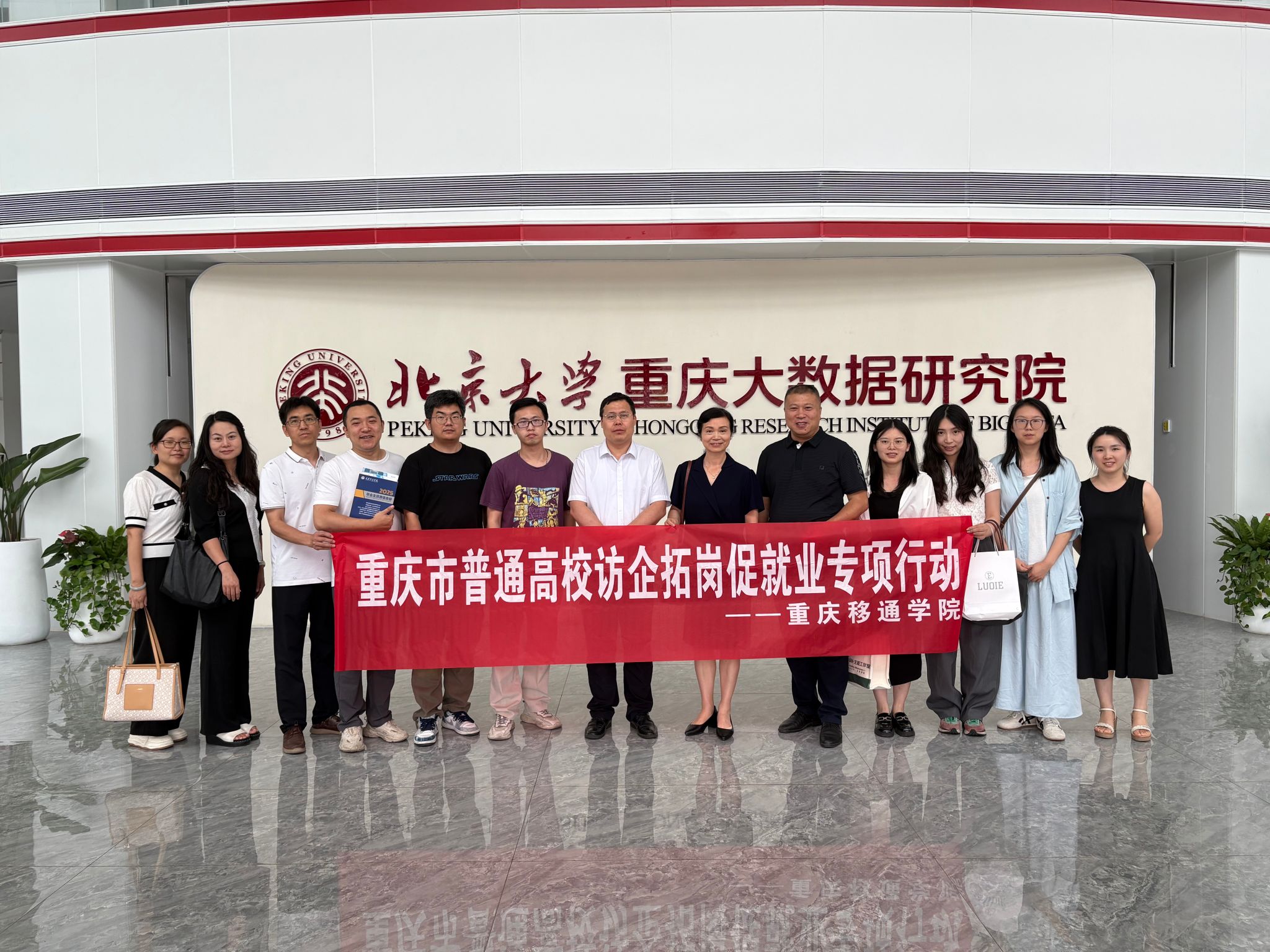 2025年6月18日,重庆移通学院副校长孙玺、大数据学院院长潘显兵、就业创业办公室主任蔡娜、基础教研室主任张华、大数据教研室主任李静毅 、数据科学与大数据技术专业负责人徐琴、辅导员曾珂、徐培馨等人,先后走访重庆科学城芯鸿数智科技有限公司、北京大学重庆大数据研究院,深度推进校企合作,探索人才培养新模式。