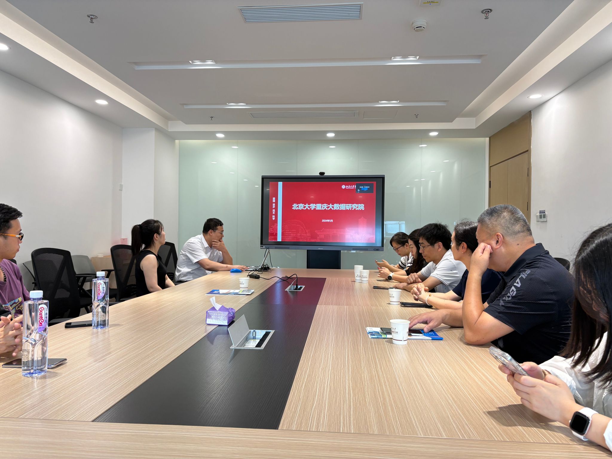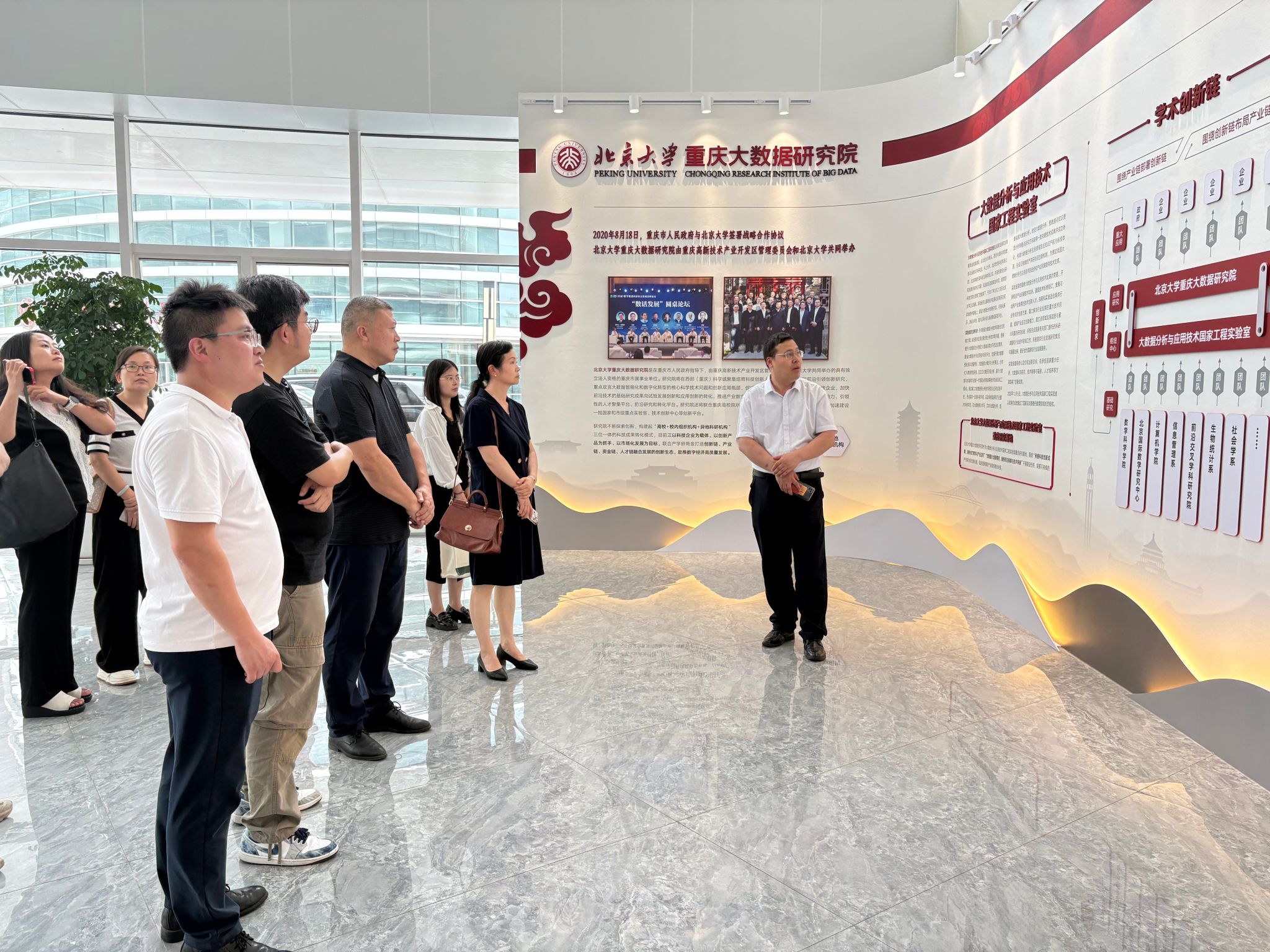下午2时,团队来到北京大学重庆大数据研究院。在参观环节中,研究院的科研成果、技术平台等内容充分展现了其在大数据领域的深厚实力。随后的座谈中,校企双方聚焦大数据技术发展趋势、产学研协同创新、学生实践平台搭建等关键内容,展开交流为未来深度合作奠定坚实基础。