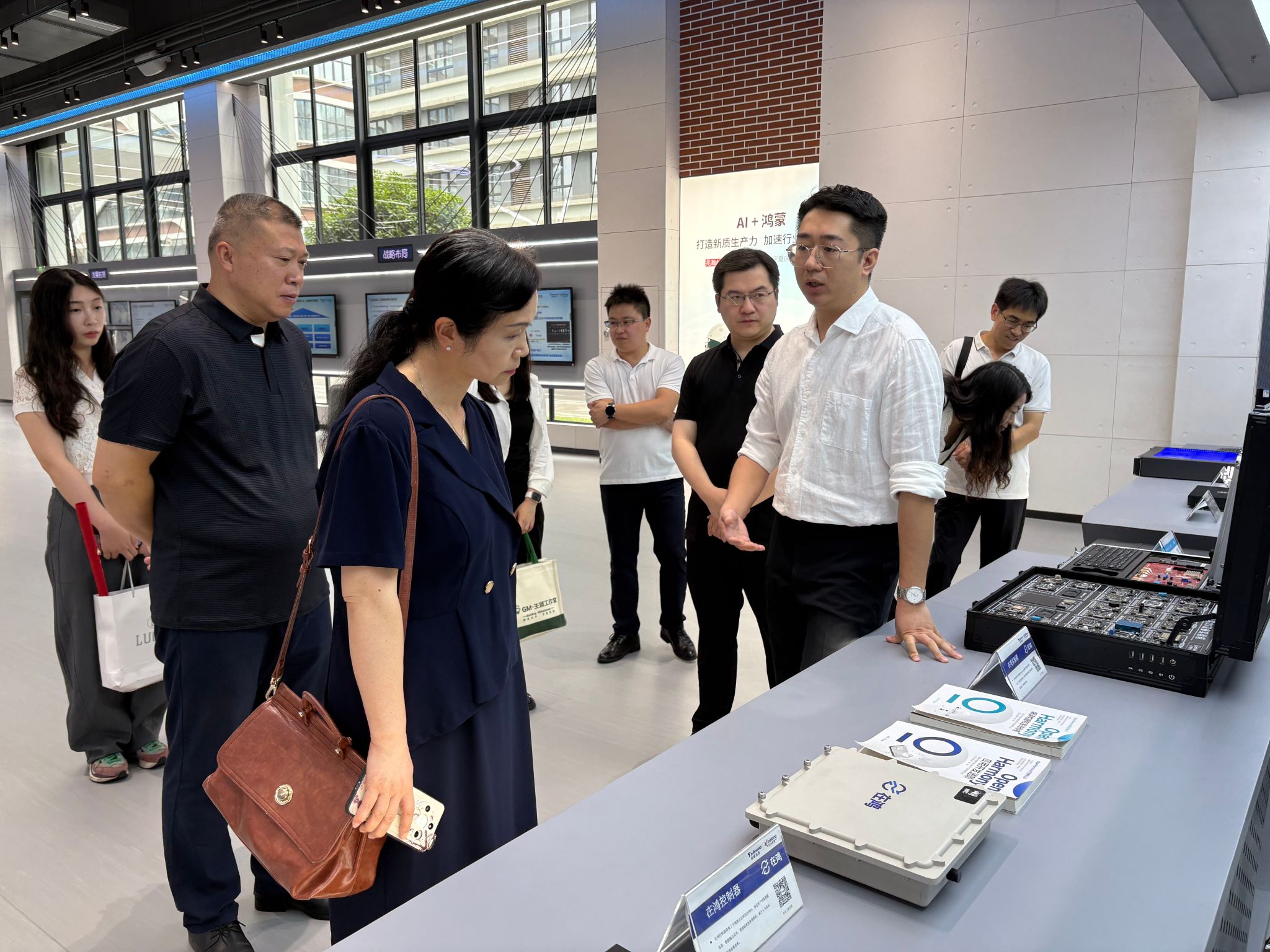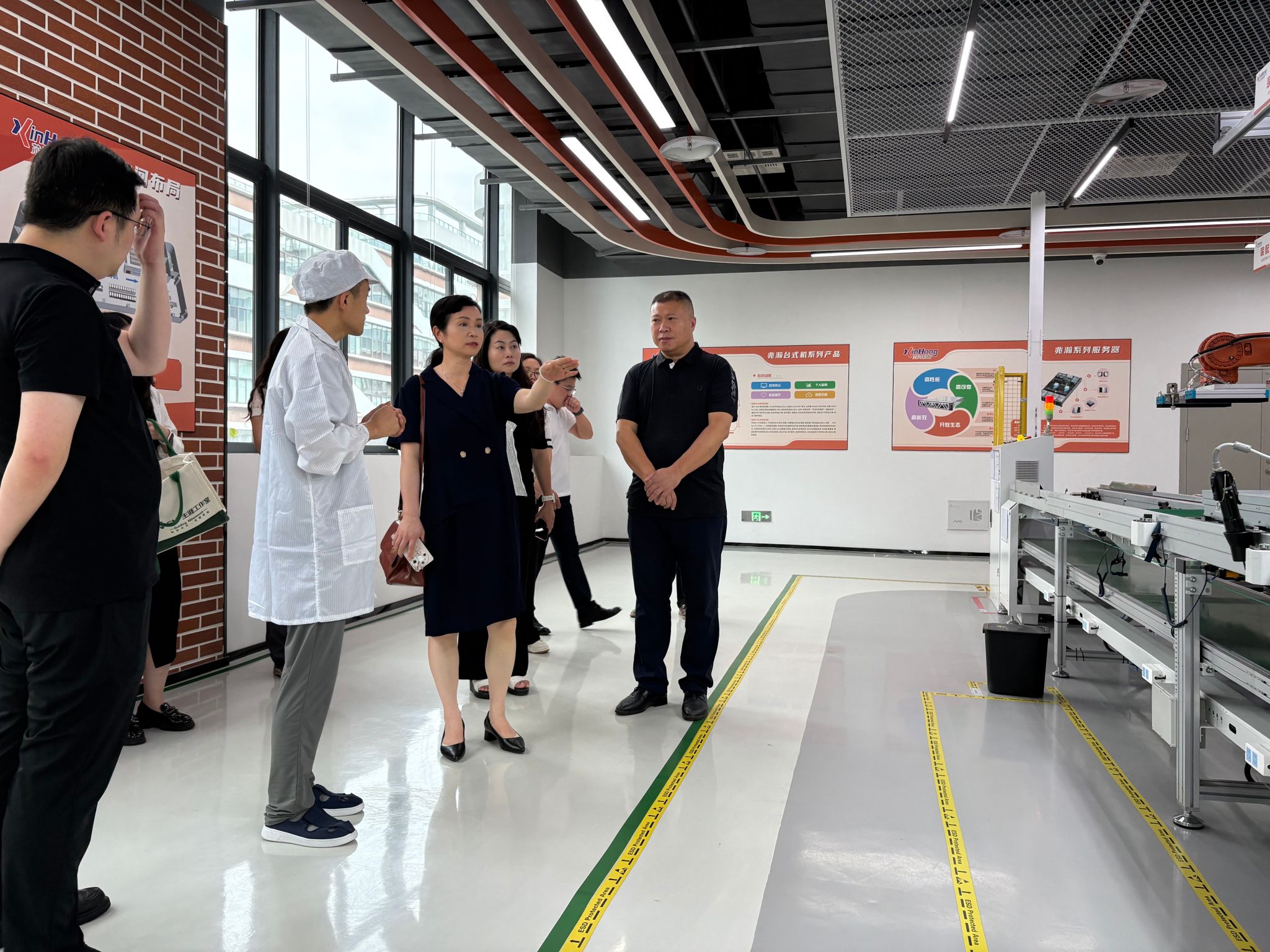 上午10时,走访团队抵达重庆科学城芯鸿数智科技有限公司。在公司副总经理付强等领导陪同下,校方代表首先参观了企业展厅,全面了解公司在数智技术领域的创新成果与应用案例;随后参观计算机产线,近距离感受前沿技术的实际生产流程。在交流座谈环节,校企双方围绕行业人才需求、课程体系优化、实习就业联动等核心议题展开深入探讨。双方愿在课程共建、项目实践等方面展开深度合作,共同培养适应市场需求的高素质数智人才。