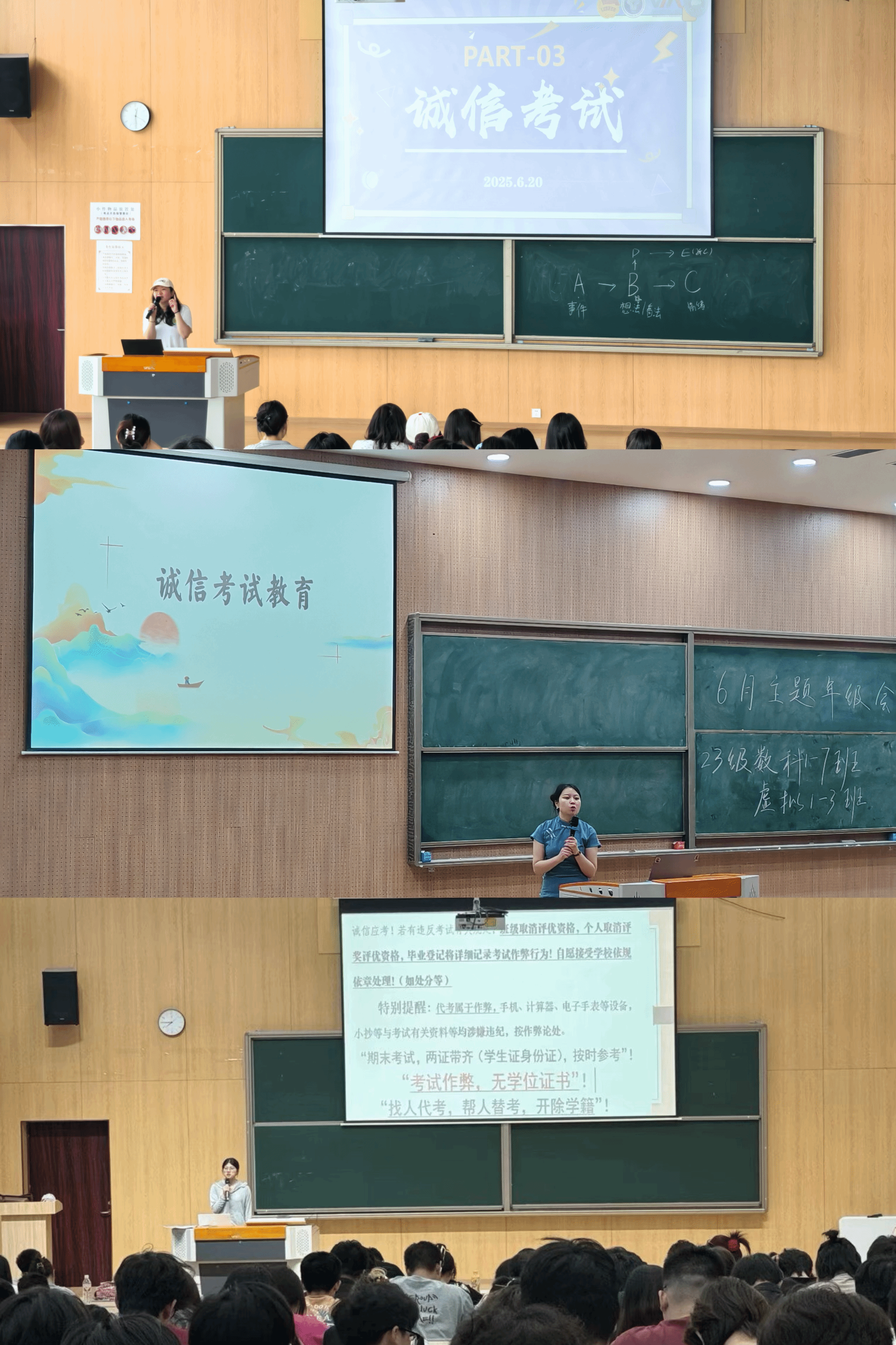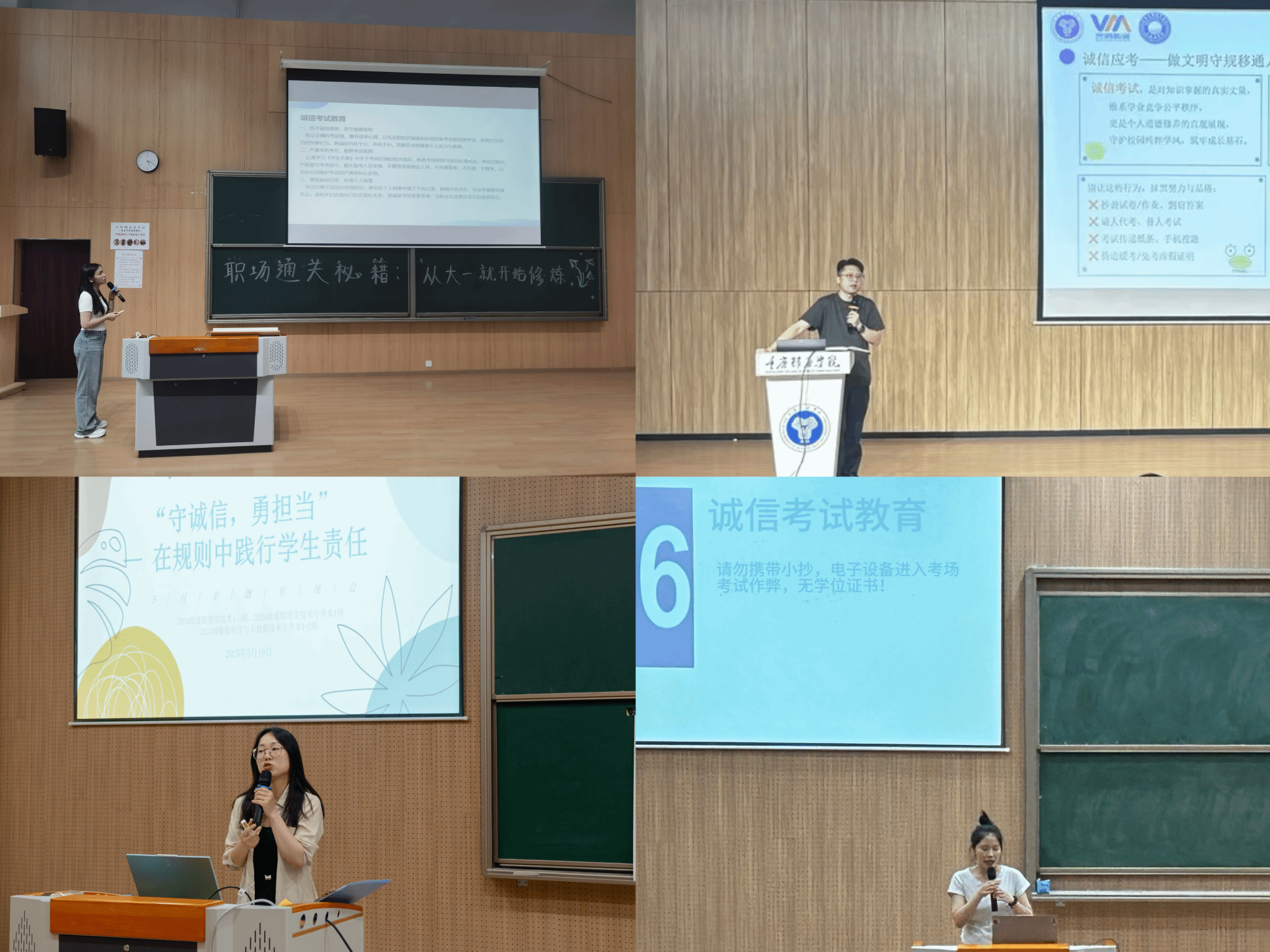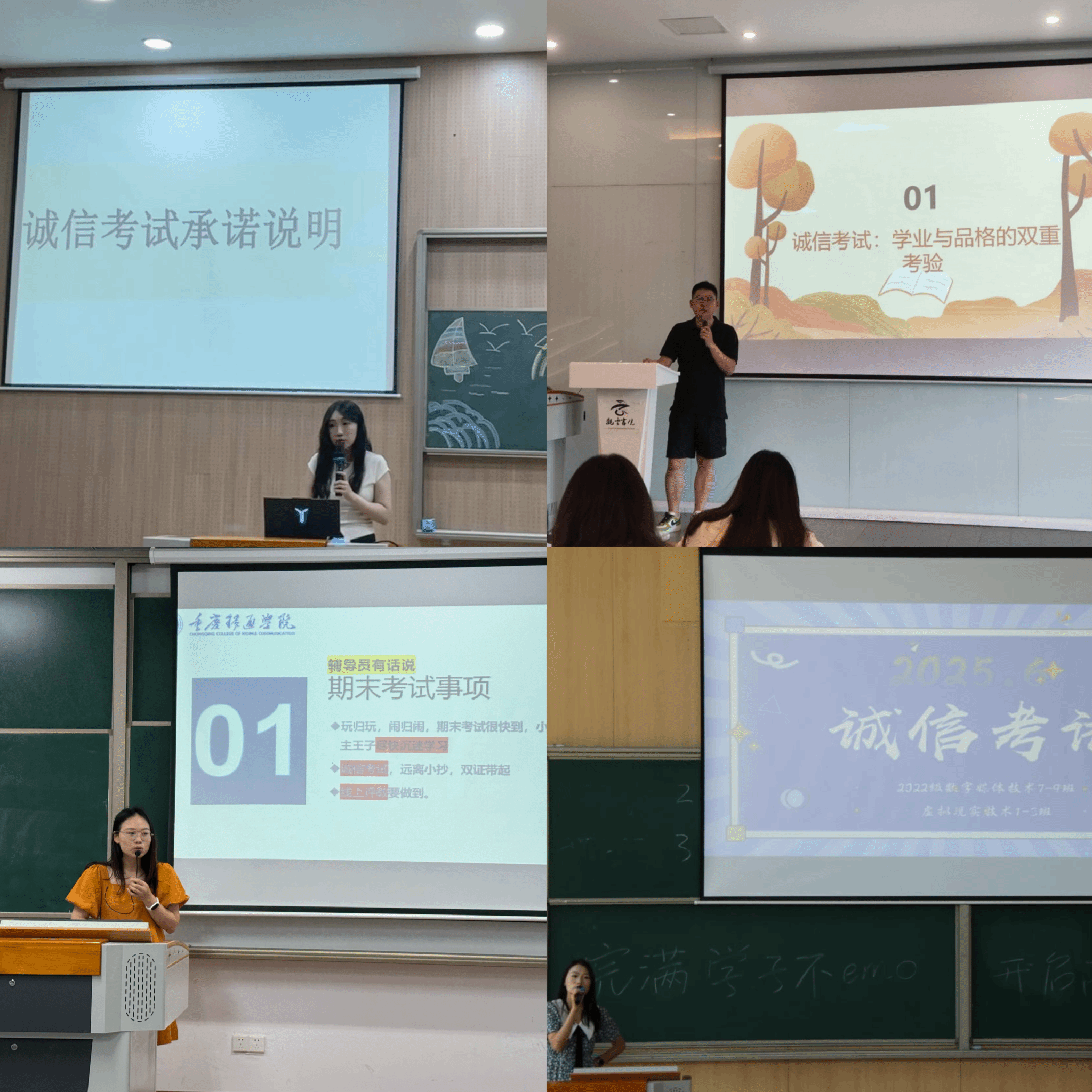 为弘扬大数据学院诚实守信的优良传统,营造风清气正的考试环境,在2024-2025学年第二学期期末考试来临之际,大数据学院全体辅导员通过多种形式开展诚信考试主题教育活动,强化学生诚信意识,扎实推进学风建设。
