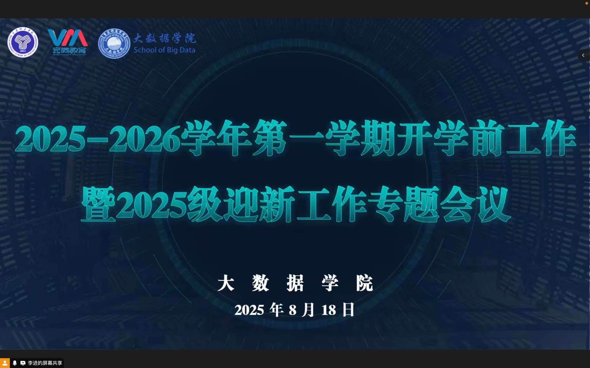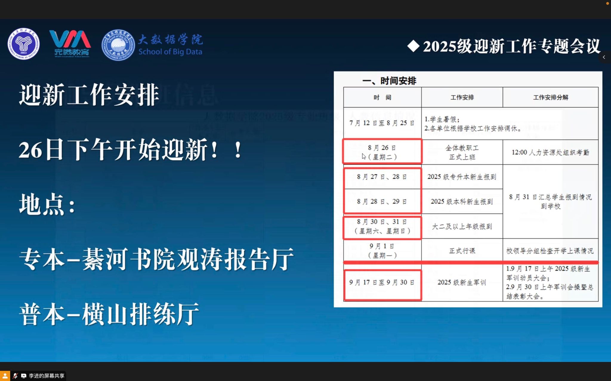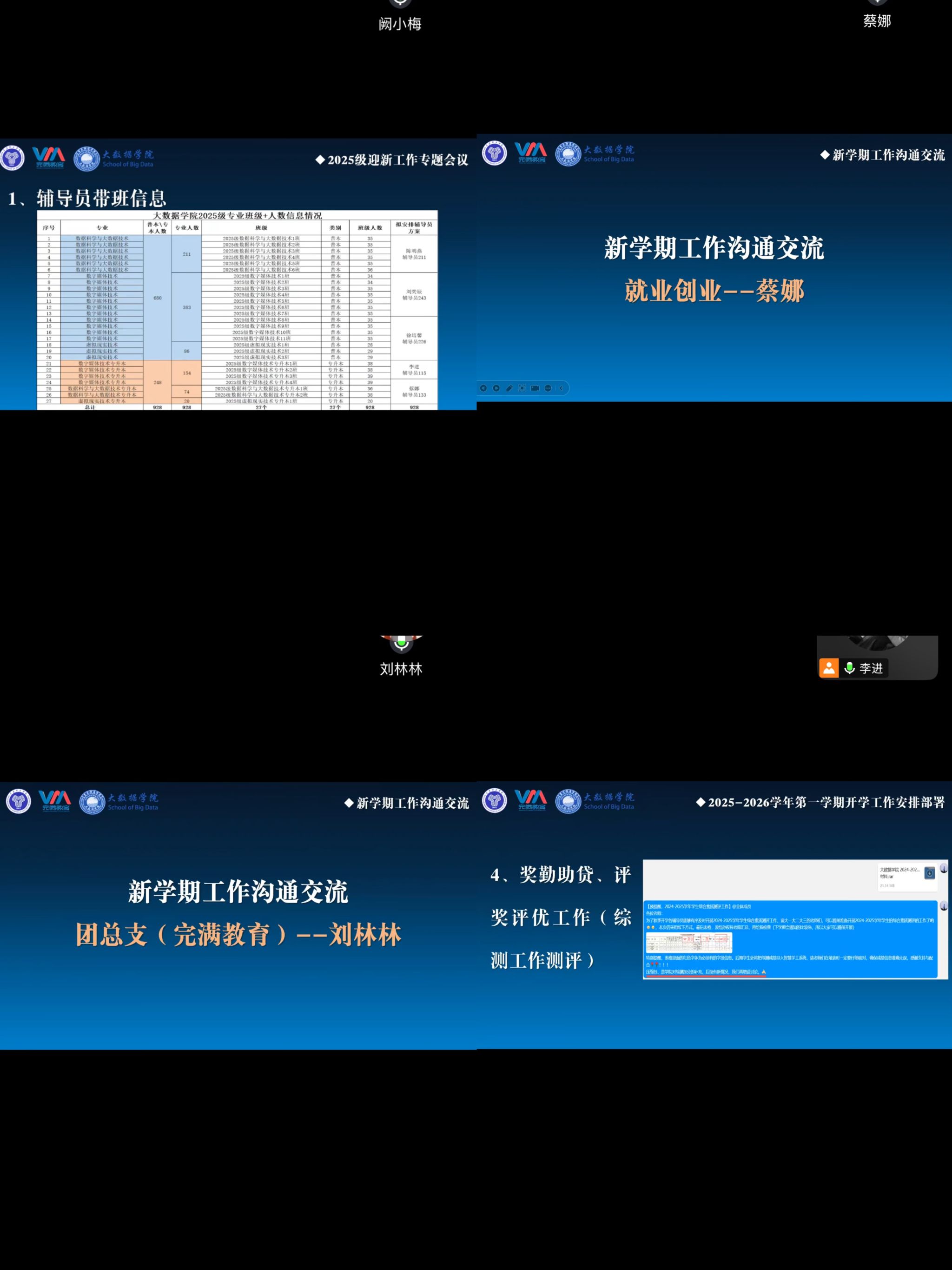 8月18日,大数据学院召开2025-2026学年第一学期开学前工作暨2025年迎新工作专题会议,学院全体辅导员参会,聚焦学生工作部署,为新学期顺利启航做准备。